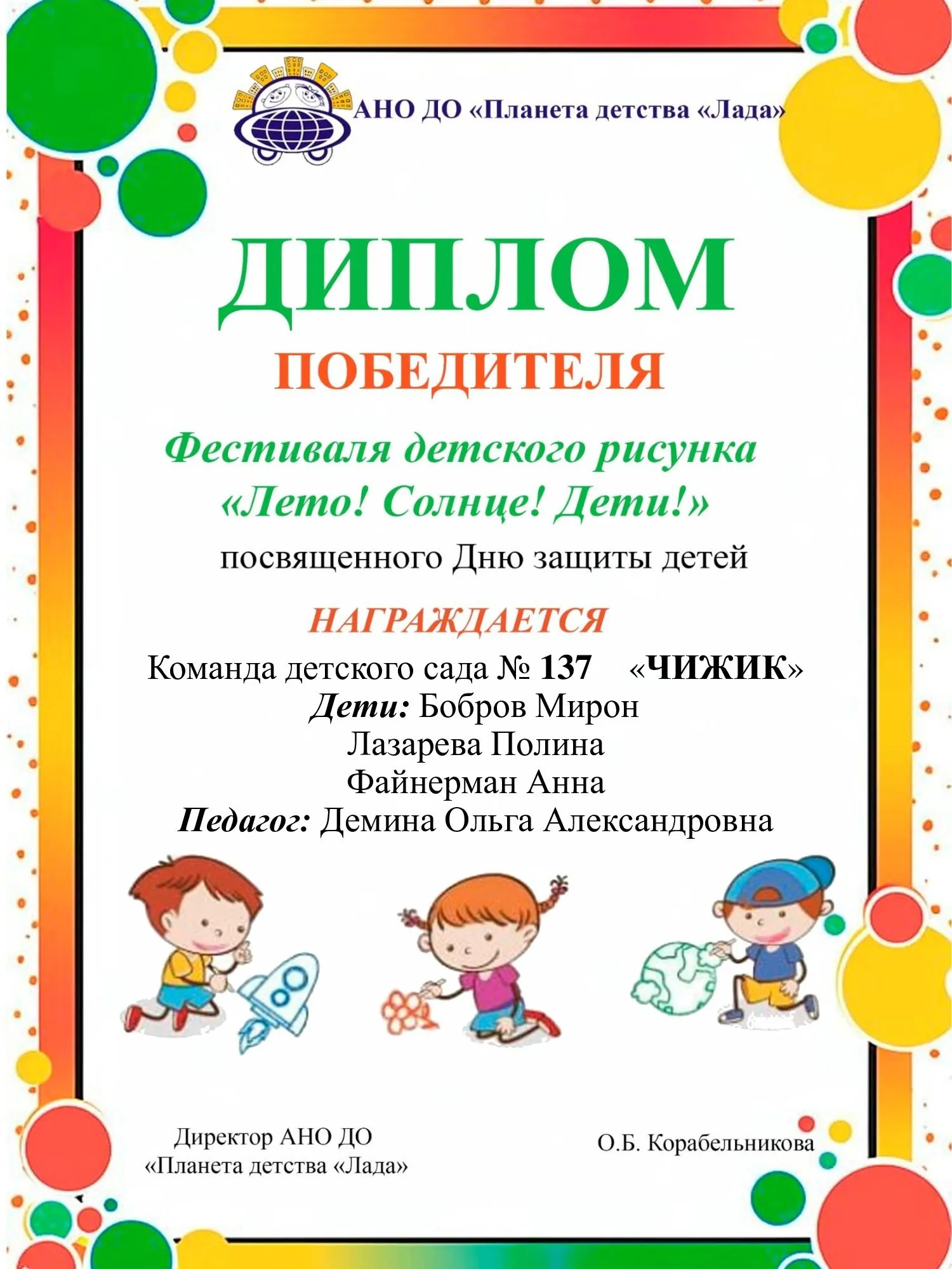 Воспитанники детского сада под руководством педагогов ежегодно принимают активное участие в различных мероприятиях Всероссийского, городского уровня, на базе АНО ДО «Планета детства «Лада», являются неоднократными призёрами и лауреатами.