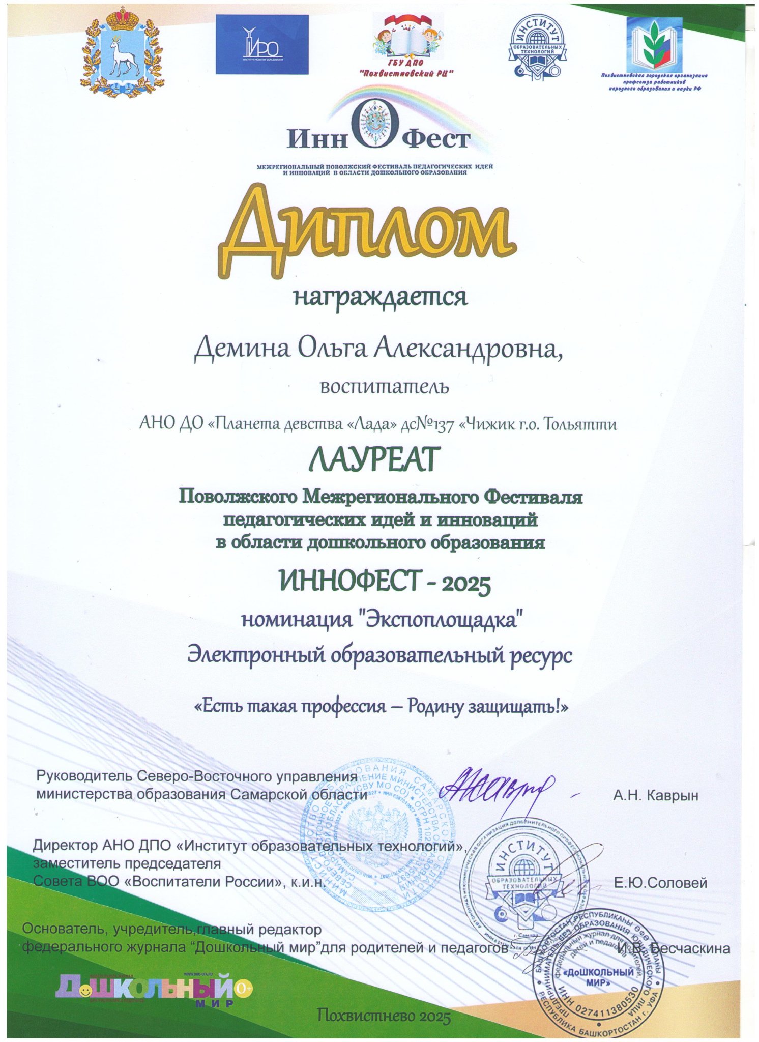 Наш детский сад является экспериментальной площадкой федерального государственного автономного учреждения "Федеральный институт развития образования" по теме: "Экспериментальная апробация основной образовательной программы "Вдохновение" как основы для разработки и реализации основной образовательной программы дошкольной организации соответствующей современным требованиям качеству дошкольного образования.