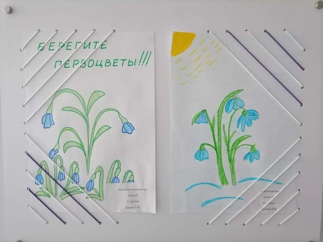 Ребята постарше изобразили первоцветы и оформили своими рисунками выставки в холле детского сада. В старших и подготовительных группах состоялся клуб знатоков "В гостях у Эколят" с интересными задачками и загадками.