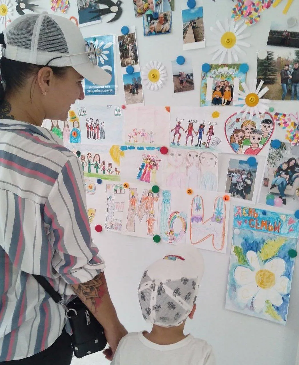 Педагоги старших и средних групп подготовили для ребят тематические творческие задания: «Дорисуй цветочную полянку», «Герб семьи», «Закончи картинку», «Я рисую счастье!», «Собери ромашку». Получившиеся работы были оформлены и представлены на выставке детского творчества и вызвали большой интерес, как у работников детского сада, так и у родителей. Также как и фотовыставка «Все начинается с семьи», оформленная детьми группы № 81 вместе с воспитателем Ольгой Владимировной.