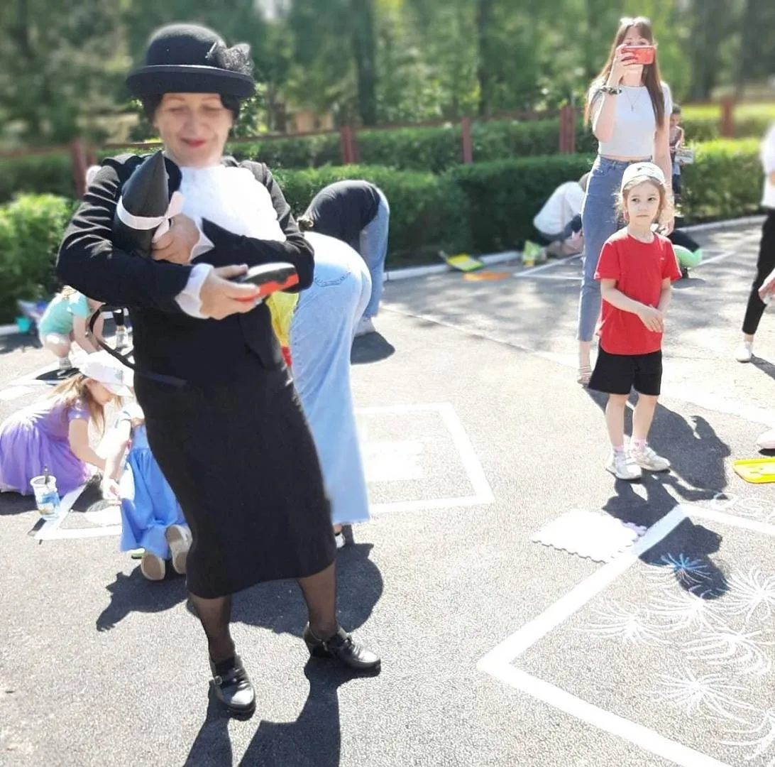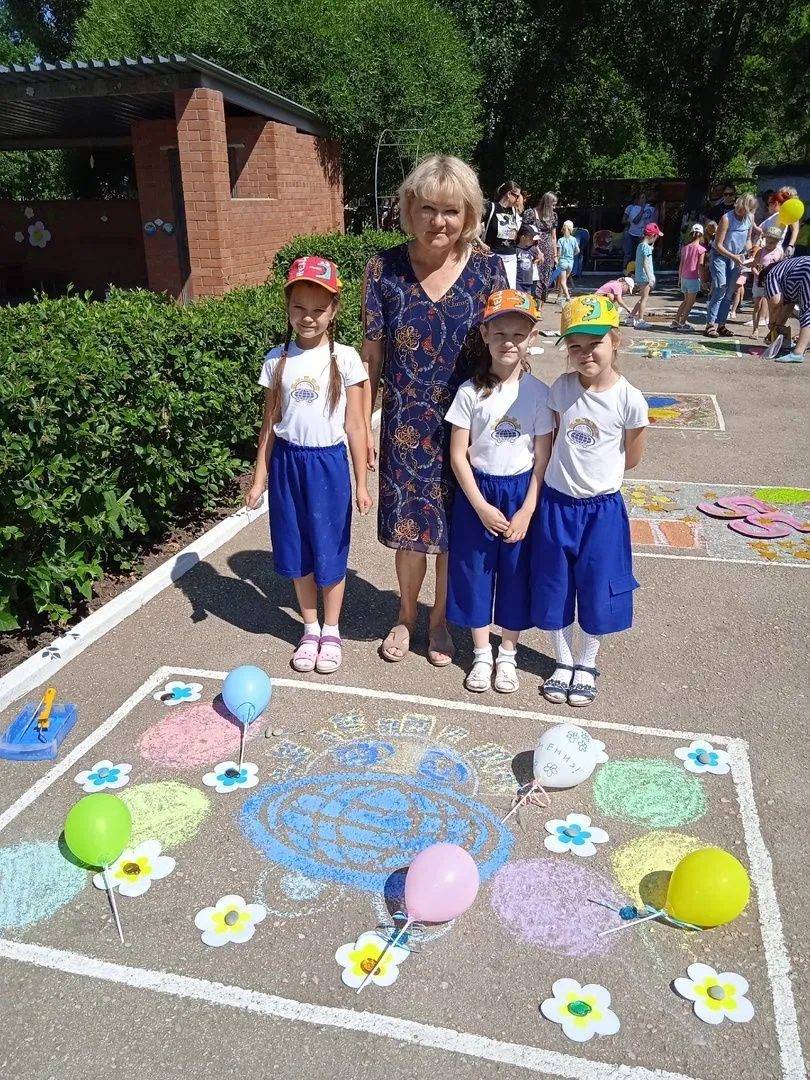1 июня команда нашего детского сада во главе с эстетом Еленой Аркадьевной приняла участие в традиционном Фестивале рисунков на асфальте «Лето. Солнце. Дети», посвящённом Дню защиты детей и Юбилею нашей дошкольной организации, который проходил в детском саду 150 "Брусничка". На праздник пришли любимые герои мультфильма "Чебурашка": крокодил Гена, Шапокляк (в исполнении музыкального руководителя Наталии Зауровны) и пушистый Чебурашка. А заряд энергии и веселья задали флэшмобы с участием танцевального коллектива " Крепыша" под руководством музыкальных руководителей Эльвиры Владимировны и Яны Николаевны.