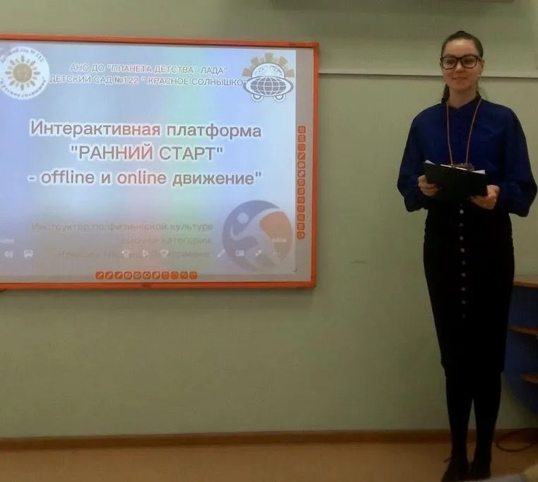 Кривова Надежда Дмитриевна, инструктор по физической культуре детского сада № 122 «Красное солнышко», представила свою педнаходку - Интерактивная платформа «Ранний старт» – offline и online-движение». Основная идея - предоставить ребенку дополнительную возможность физического развития дома, включив родителей в решение задач образовательной области «Физическое развитие» средствами дистанционного образования. Это не только возможность обеспечения двигательной активности, но и увлекательная режиссерская игра, где ребенок, создавая вместе со взрослым видеоролик, может попробовать себя в роли: актера, режиссера, оператора, инструктора или спортсмена.