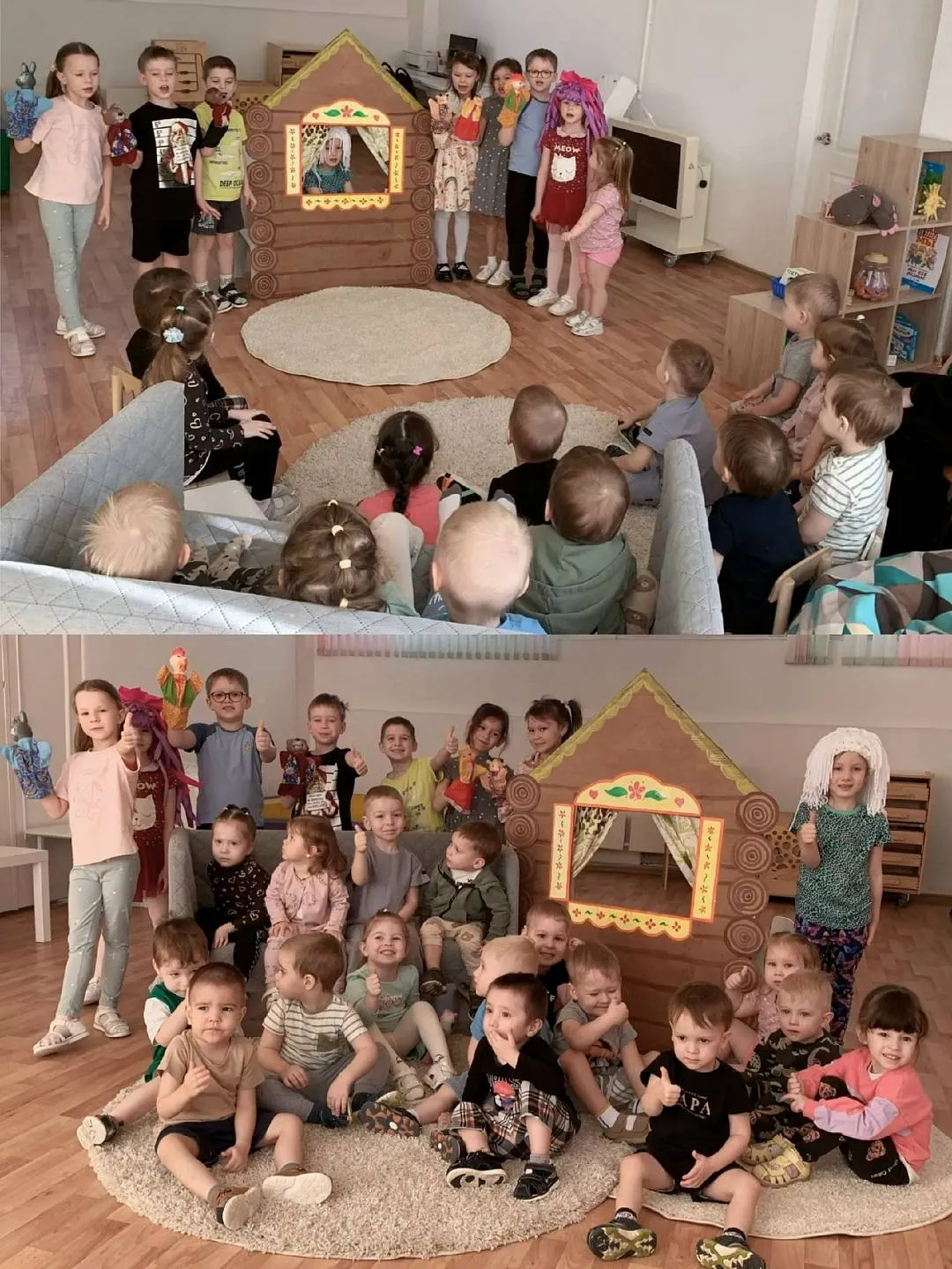 Ребята подготовительной группы 92 устроили для малышей настоящее представление ! Познакомили со сказкой "Теремок"