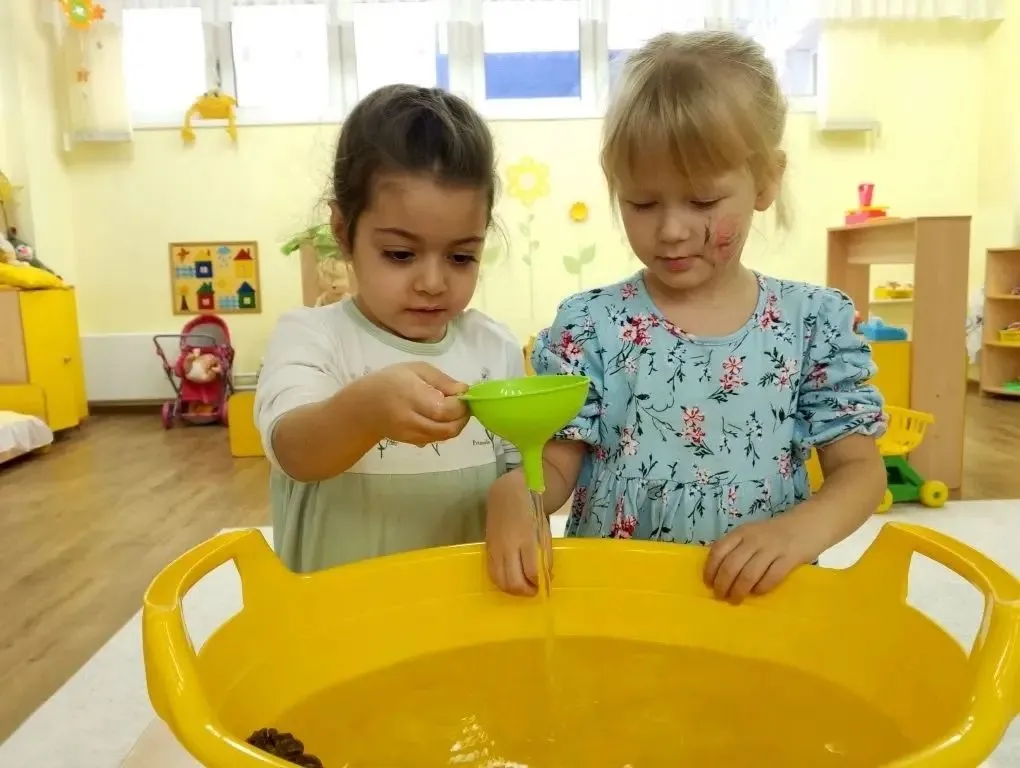 Опыты с водой: узнали, какие предметы тонут, а какие уверенно держатся на плаву.