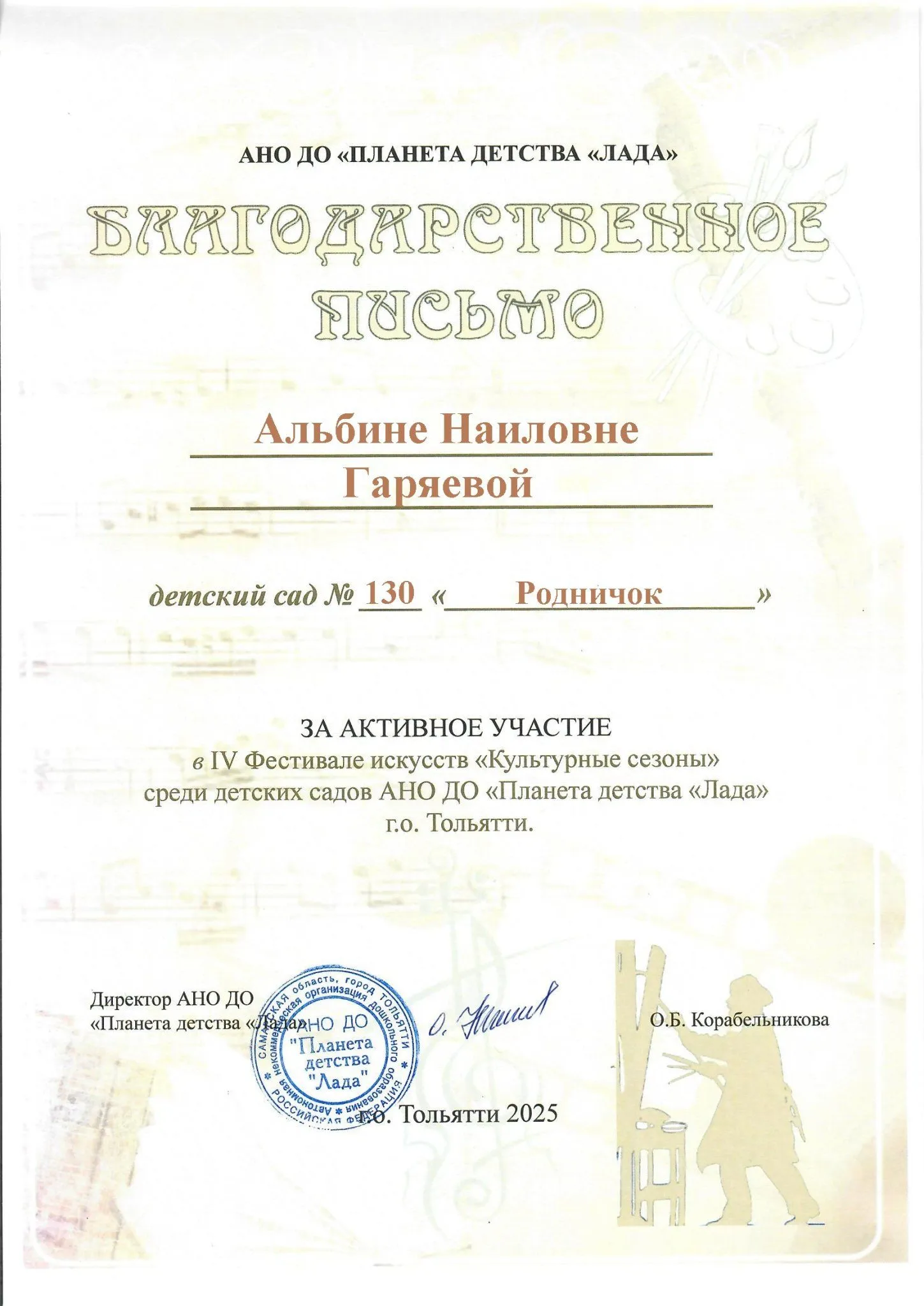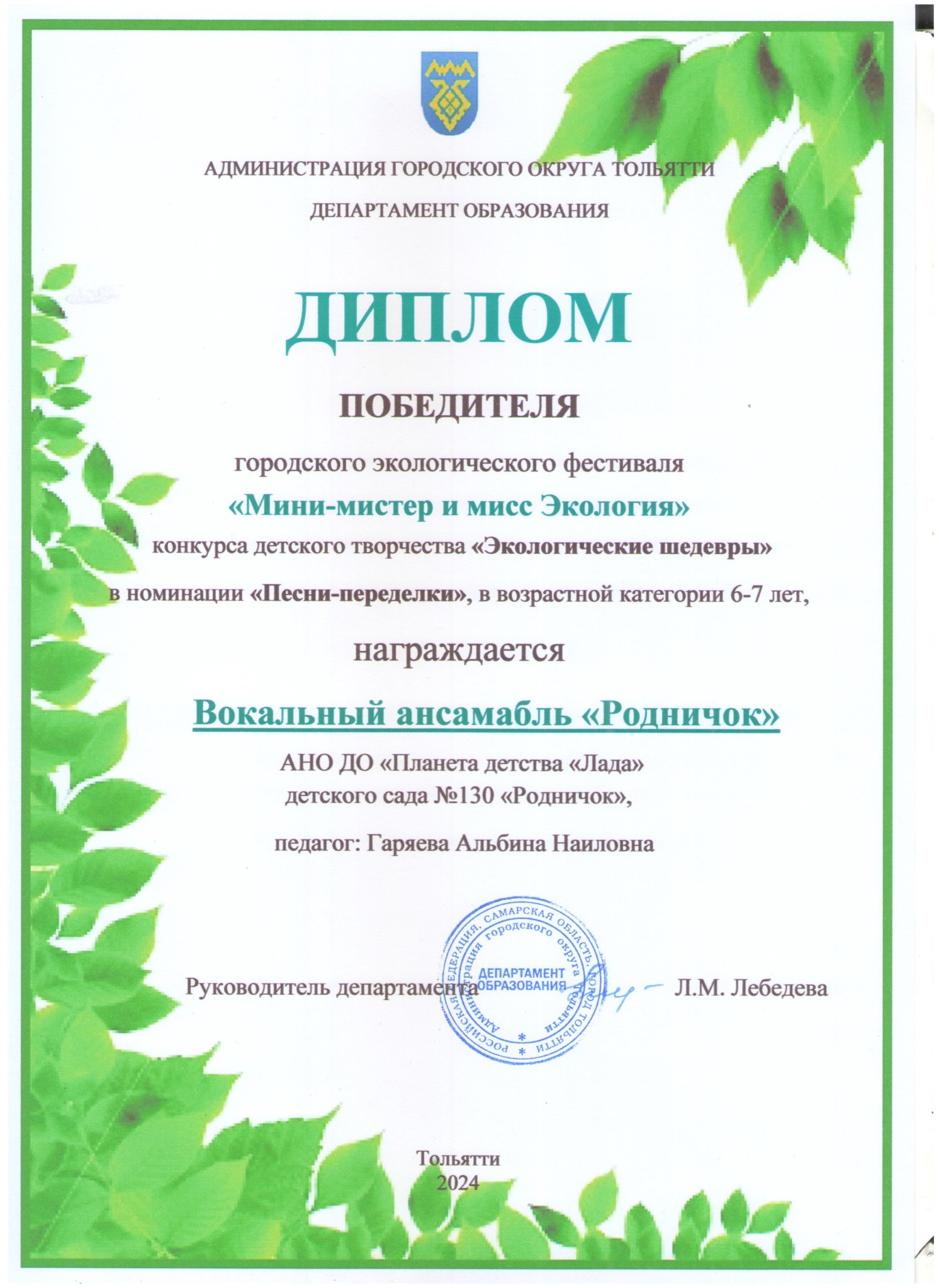 Я рада приветствовать вас на страничке детского сада № 130 «Родничок». Наш коллектив состоит из профессиональных педагогов, каждый из которых изо дня в день трудится на благо детей. Систематическое повышение своего профессионального мастерства, регулярное участие в семинарах, конкурсах, мастер-классах делают работников детского сада компетентными во всех вопросах дошкольного образования, а детей неоднократными победителями в конкурсах разного уровня. В активах нашего детского сада находится огромное количество методических материалов, образовательных авторских программ, направленных на развитие воспитанников. Дальнейшие успехи в жизни каждого ребенка, как и строительство дома, зависят от качества заложенного фундамента, а детский сад «Родничок» именно то учреждение, которое поможет в этом нелегком деле!