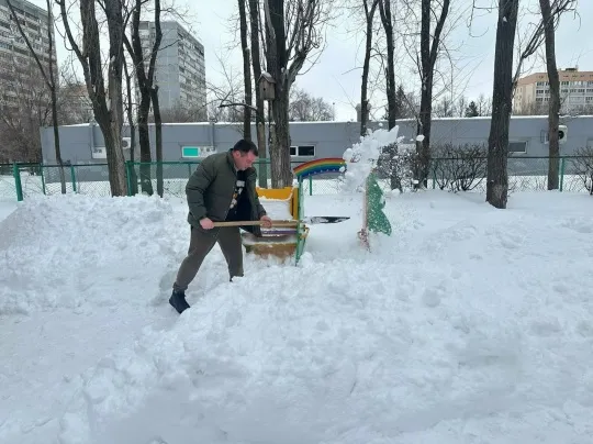 В последний день зимы выпало большое количество снега — ❄️❄️❄️ игровые площадки детского сада оказались полностью занесены.