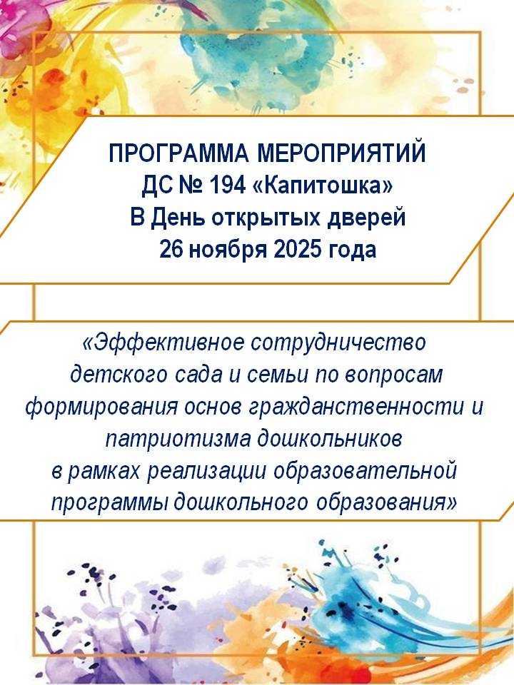 День открытых дверей в детском саду № 194 "Капитошка" прошел при активном участии родителей наших воспитанников. Мастер-классы, творческие мастерские, исследовательские лаборатории, книжные мастерские - во всех видах детской активности они проявили себя, включаясь не только в качестве участников, но и ведущих.