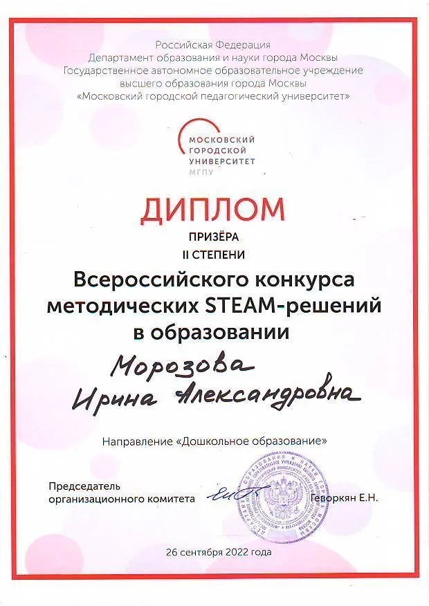Реализует основную общеобразовательную программу дошкольного образования детского сада, а также адаптированную основную образовательную программу для детей с нарушением опорно-двигательного аппарата и нарушением речи.