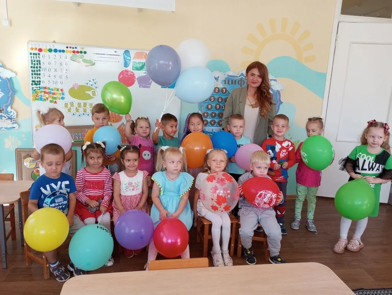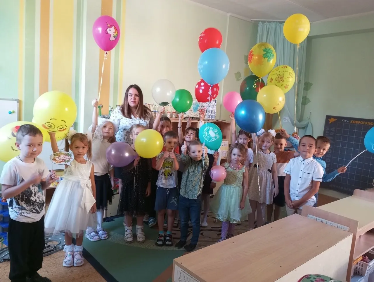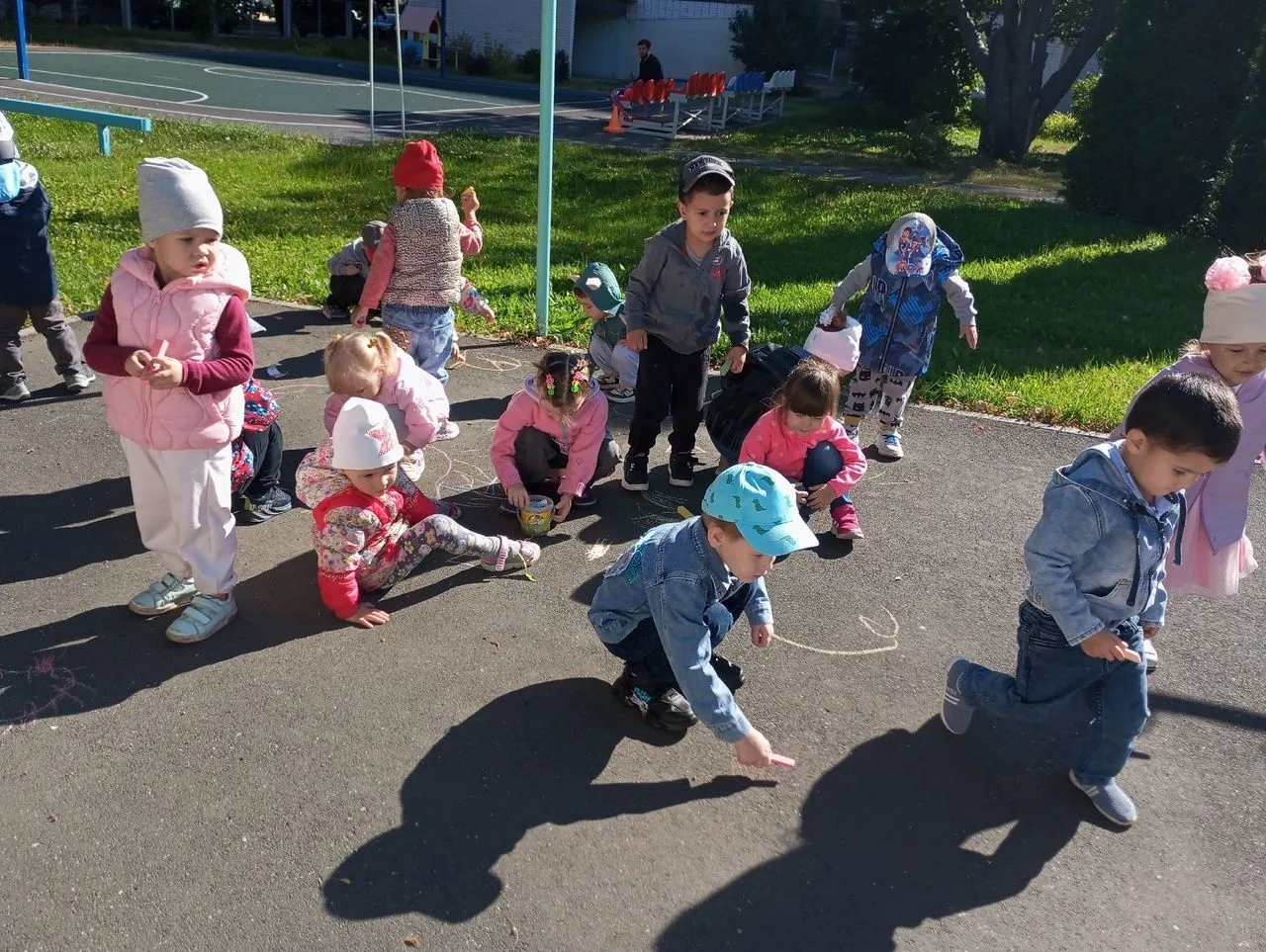 В подготовительной группе 72 дети участвовали в "Пятерочной викторине", собирали портфель первоклассника. В средней группе ребята участвовали в познавательной викторине "В гости в школу". Наши малыши группы 11 сегодня тоже встречали "День знаний", утром был веселый праздник "Радостных встреч". У воспитанников старших групп 81 и 82 сегодня был замечательный спортивный праздник. Ребята участвовали в спортивных эстафетах. Они получили заряд бодрости и хорошего настроения настроения на весь учебный год. Воспитанники младшей группы 11 тоже встречали сегодня "День Знаний", утром ребята побывали на развлечении "Дружные ребята", а в заключении ребята с удовольствием нарисовали мелками на асфальте праздник.