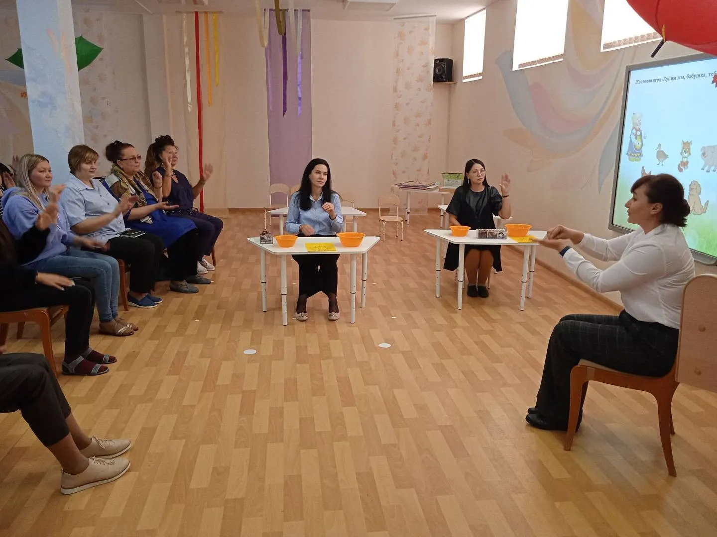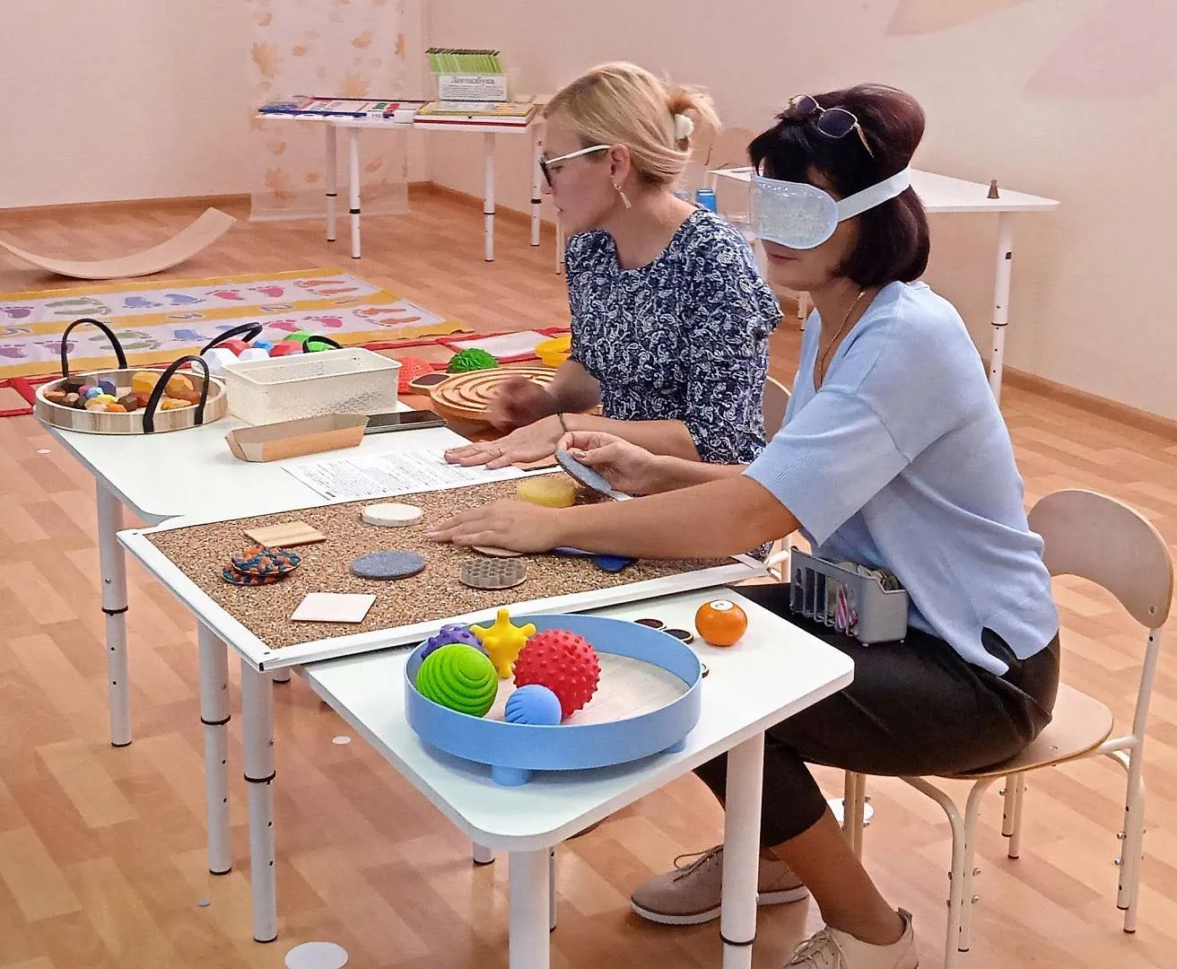 Детский сад № 171 «Крепыш» продемонстрировал коллегам актуальную тему по использованию метода сенсомоторной интеграции в работе с детьми с ОВЗ старшего дошкольного возраста. Метод сенсомоторной интеграции в работе воспитателя и всех специалистов детского сада предполагает стимуляцию всех органов чувств, что в свою очередь эффективно влияет на коррекцию речевых нарушений. На мастер-классе педагоги играли с тактильным кубом «Парочки», балансирами с выполнением заданий, находили парные фишки в «Муфте», прыгали по дорожке следов под ритм и многое другое.