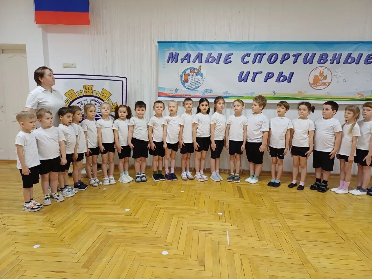 На церемонии с парадом выступили команды подготовительных групп, прозвучал гимн нашей страны.