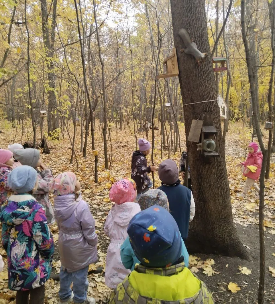 Ребята в полном восторге от белочек и птичек, а мы — от их счастливых глаз!