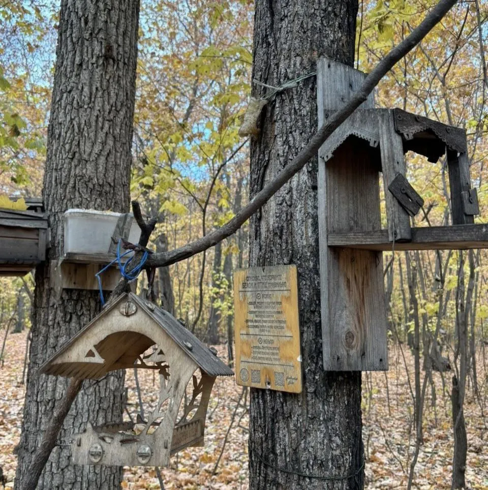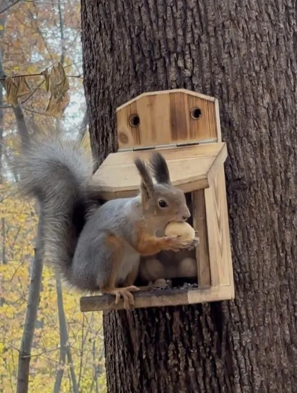 Ребята с восторгом кормили птичек и юрких белочек, которые с радостью принимали угощения. Атмосфера там просто замечательная: повсюду кормушки, наполненные заботой местных жителей.