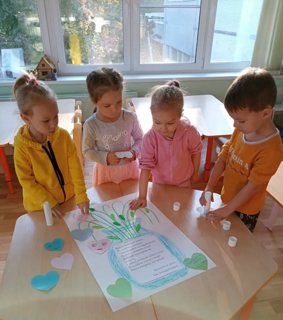 Воспитанники нашего детского сада "Красное солнышко" под руководством воспитателей изготовили праздничные открытки и плакаты, подписали их самостоятельно и поздравили дошкольных работников любимого детского сада с праздником! Пожелали терпения, добра, всегда прекрасного настроения! А, так же творческих успехов и вдохновения!