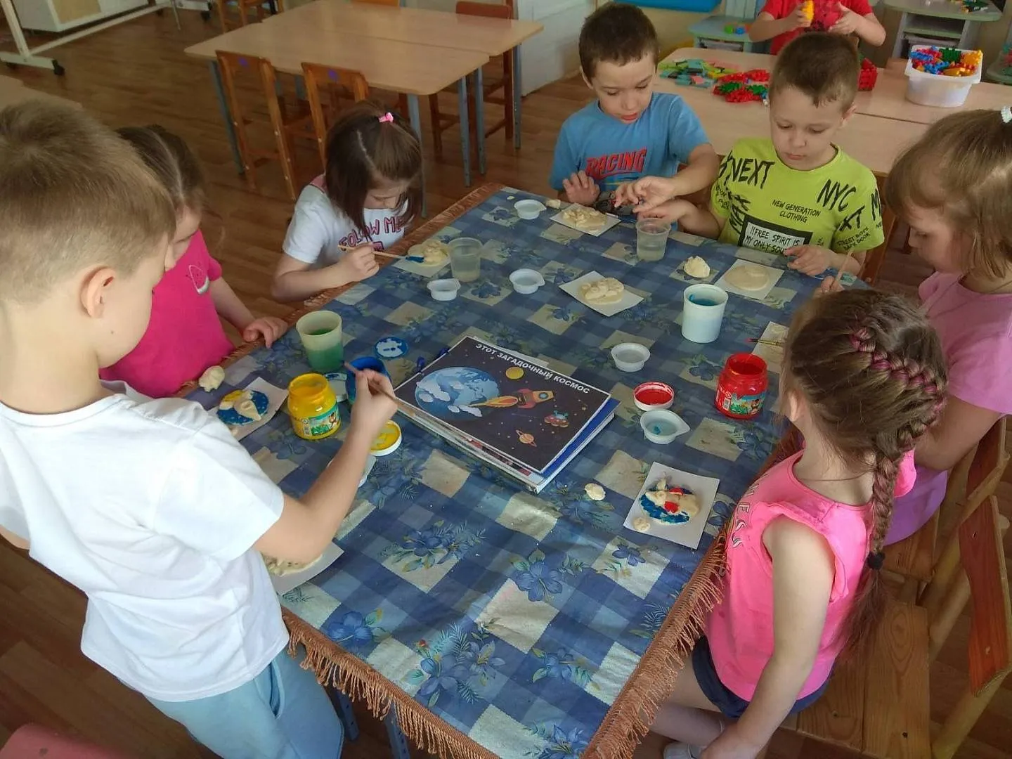 Как же интересна космическая тема! Всю неделю дети были погружены в эту тему: изучали, рисовали, строили космические корабли, лепили из теста и пластилина, рассматривали иллюстрации и многое другое!