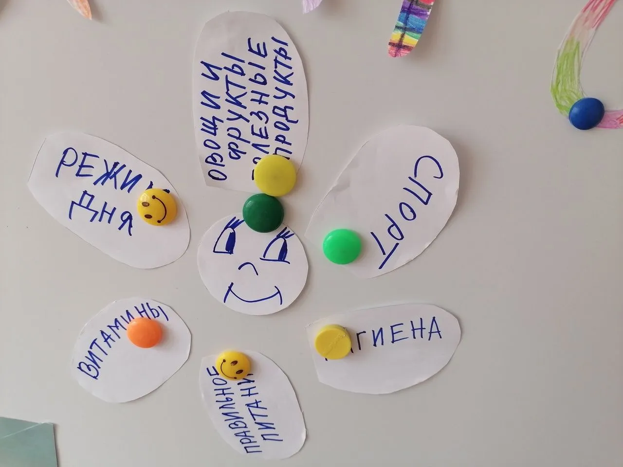 Сегодня 19.10.23 в нашем саду день открытых дверей . Родителям выпала возможность вместе со своими детьми прожить один день в детском саду . Родители старшей группы 82 вместе с детьми побывали на занятии по Познавательному развитию "Путешествие в страну "Здоровейка" и собрали из лепестков с заданиями цветок "Здоровья". Родители и детки с огромным удовольствием выполняли все задания .