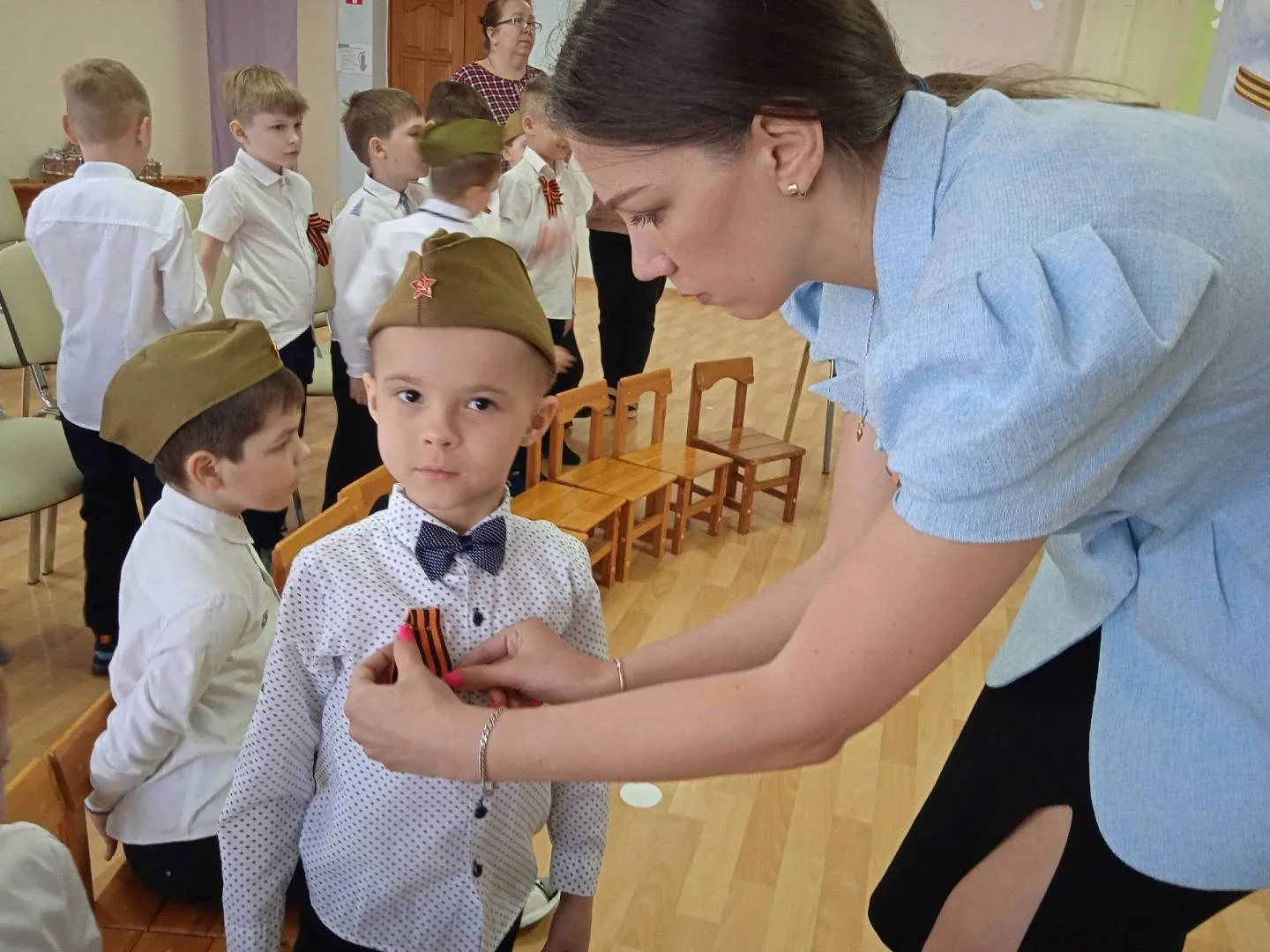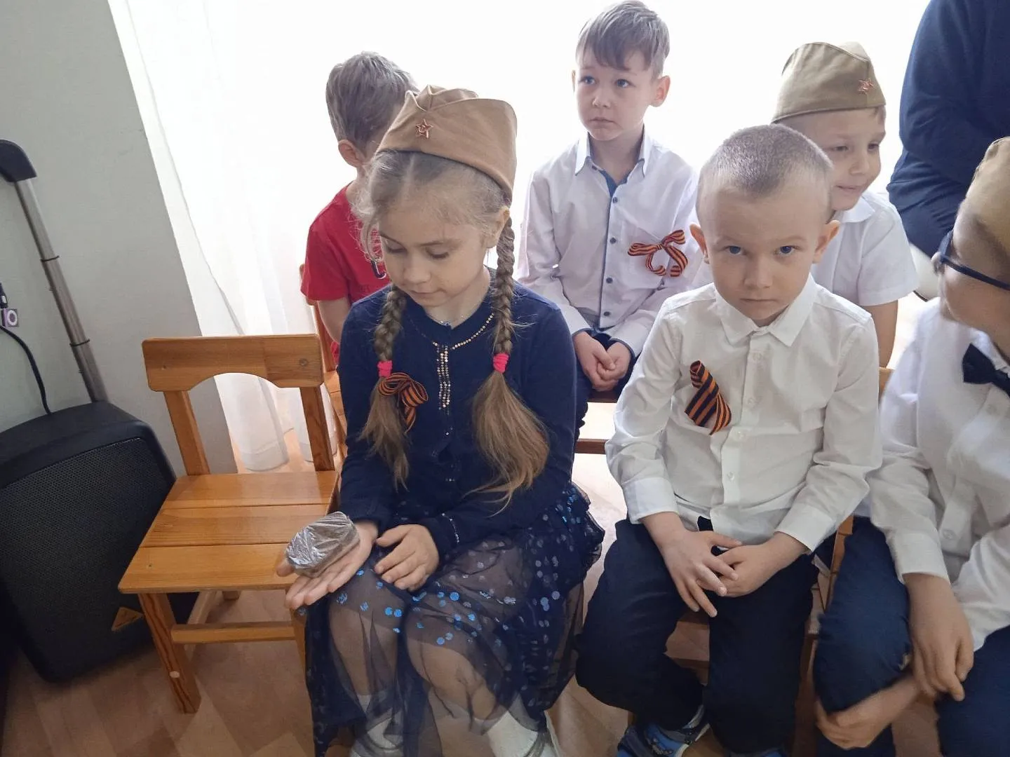 А в конце все получили георгиевские ленточки- символ воинской славы.