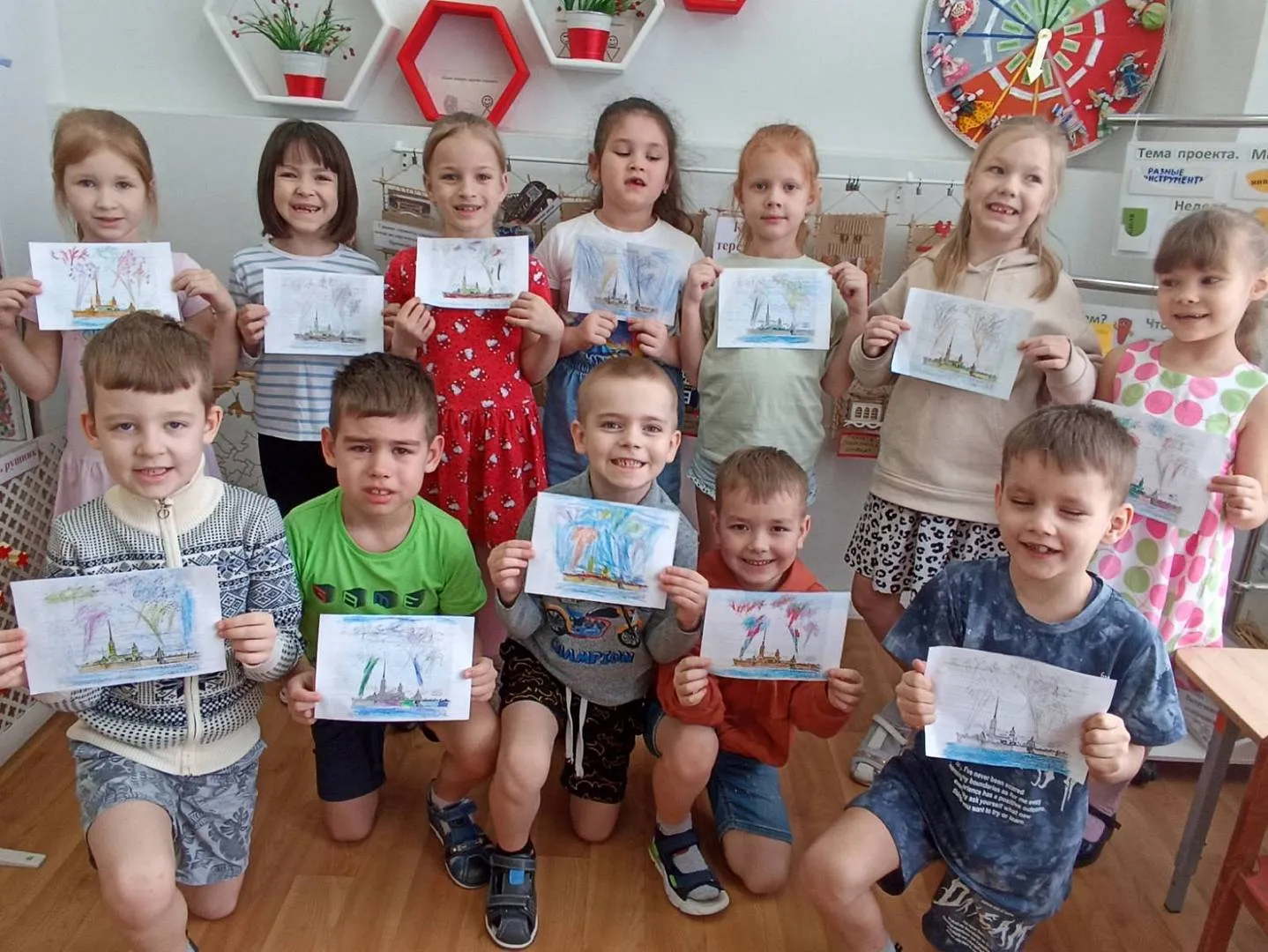 Завершилась беседа созданием творческих работ с изображением победного салюта над небом Ленинграда.