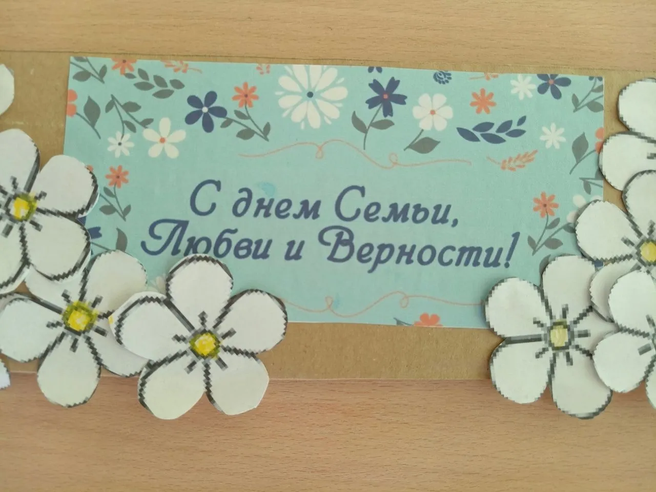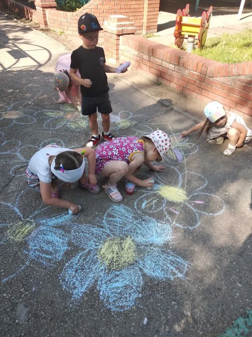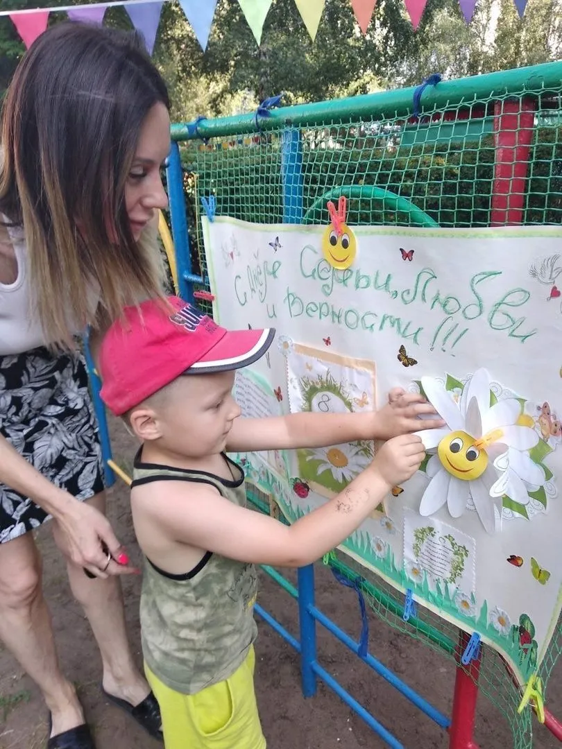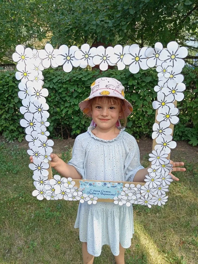 В детском саду в это день появились разные ромашки. Дети нарисовали мелом на асфальте сердечко из ромашек, сделали фоторамку из ромашек для фотозоны, нарисовали цветы с пожеланиями и мн.др.