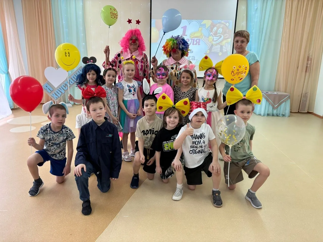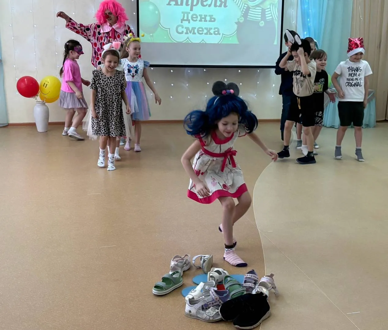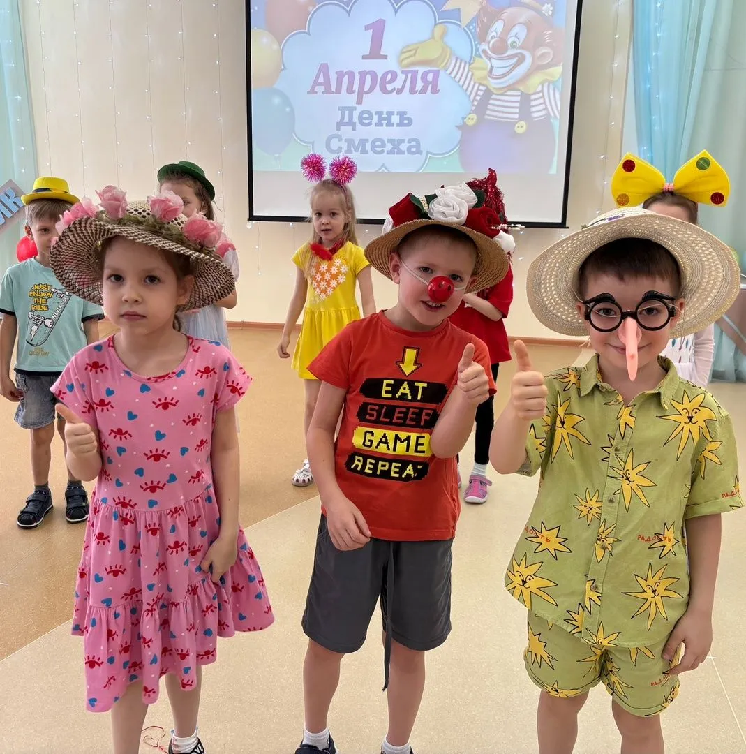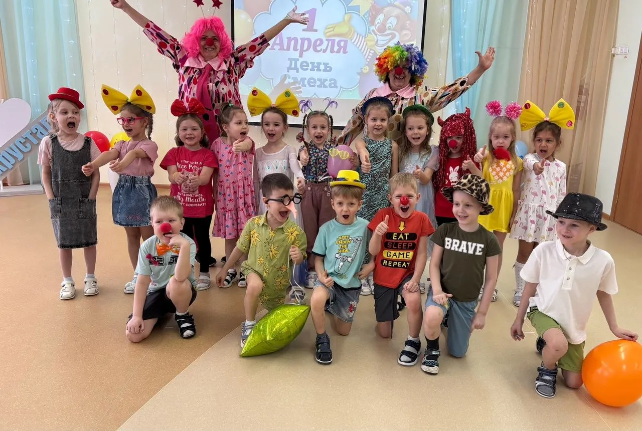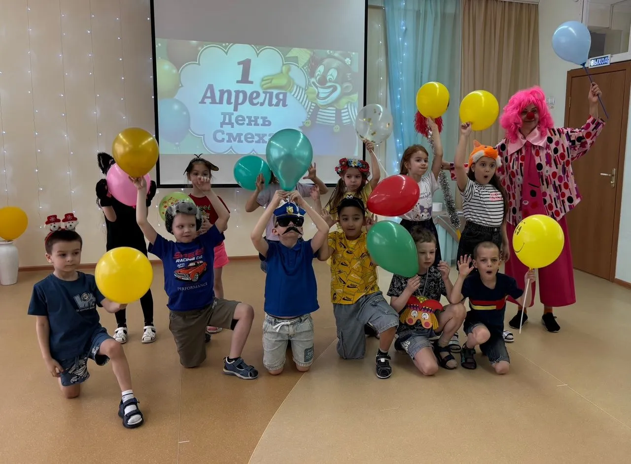 1апреля - яркий и забавный праздник юмора и смеха, который отмечают во всём мире взрослые и дети. Стало доброй традицией ежегодно отмечать этот праздник в нашем детском саду. Бурю положительных эмоций и смеха детям доставил музыкальный праздник, на который все участники пришли нарядными, веселыми, с радостными улыбками. Их встречали и развлекали клоуны Чупа и Чупс. Они разыгрывали детей, шутили, танцевали и делали весёлую зарядку. Ребята участвовали в весёлых играх, аттракционах и соревнованиях: "Обувной салат", " Воздушный шарик", "Шляпа" и др. На прощанье клоуны угостили детей сладостями. Все остались очень довольны!