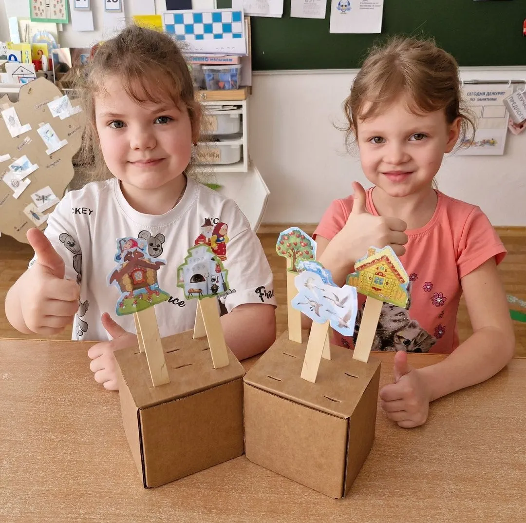 Дети стали участниками художественной мастерской и раскрасили театральные маски, изготовили персонажей на палочках для сказки "Гуси- лебеди",самостоятельно организовали мини-театр с миниатюрой "Весенняя всреча насекомых".