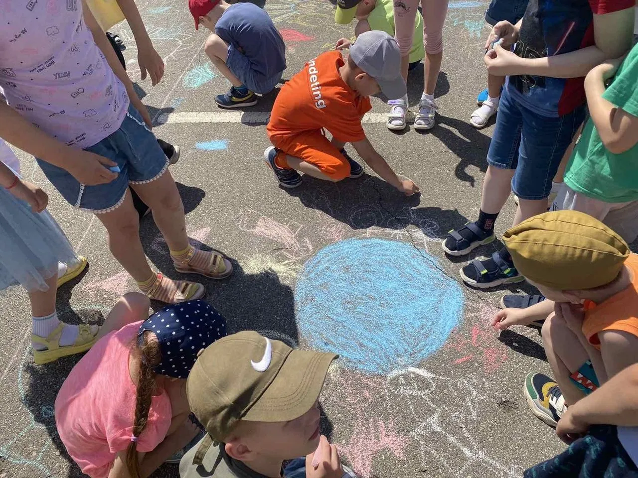 Праздник продолжился рисованием на асфальте цветными мелками. В детских рисунках можно было увидеть природу, друзей, родных и близких людей.