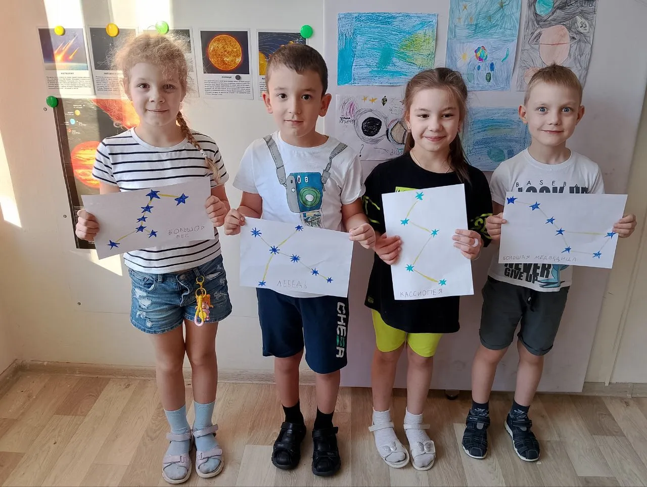 Этот вопрос заинтересовал ребят подготовительной к школе группы № 82 из детского сада № 206 «Сударушка», и они решили это узнать. Команда «Земляне» во главе с наставником-педагогом, Натальей Викторовной, активно включилась в познавательный процесс! Ребята рисовали планеты, лепили космические корабли, конструировали летательные аппараты для изучения небесных звезд! А как интересно они рассказывали друг другу о созвездиях.
