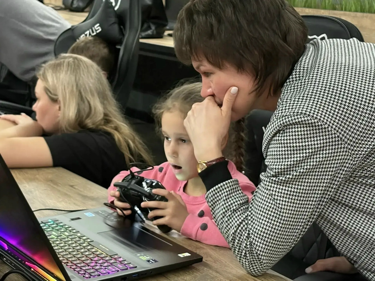 Особое внимание детей привлекли интерактивные занятия, проведённые первым вице-президентом Федерации Арсеном Алимовичем Джалиловым. Под руководством опытного наставника, ребята, вместе с родителями, осваивали управление дронами на специальном тренажёре. Этот современный симулятор, который позволяет начинающим операторам освоить ключевые навыки пилотирования беспилотных аппаратов в безопасной обстановке.