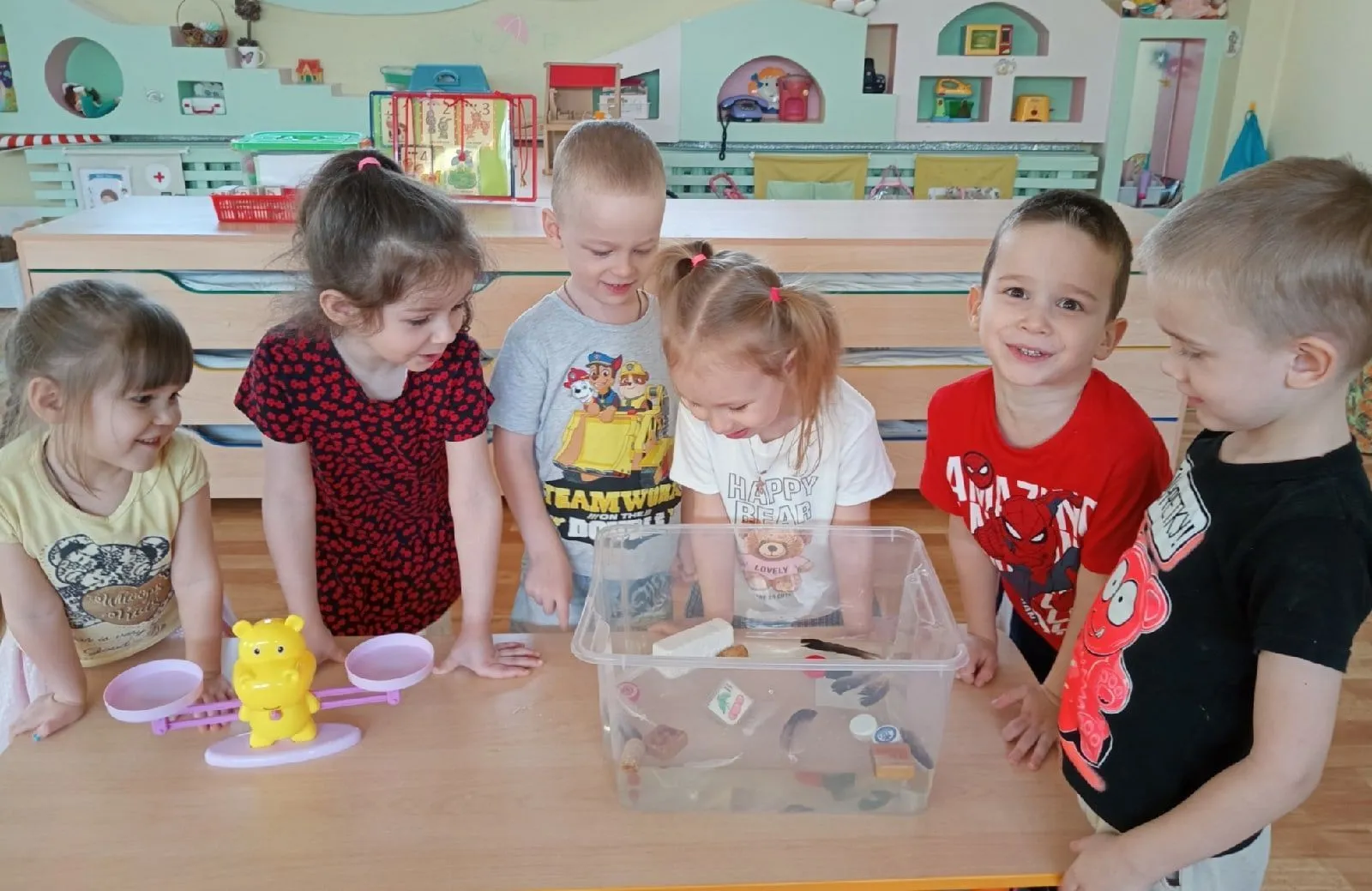 Очень интересно что пока нам неизвестно! Ребята средней группы под руководством педагога Ольги Владимировны, проводили эксперименты и опыты "Тяжелее - легче", "Тонет - плавает" с предметами из различных материалов: пробка, дерево, пенопласт, пластик, перо, резина, железо. Бегемотик помог ребятам взвесить предметы, и оказалось, что предметы плавают не зависимо от веса, потому что скрепка легче кубика, а тонет, а тяжёлый кубик из дерева, плавает. Такие познавательные занятия для детей очень увлекательны, и развивают интерес к науке.