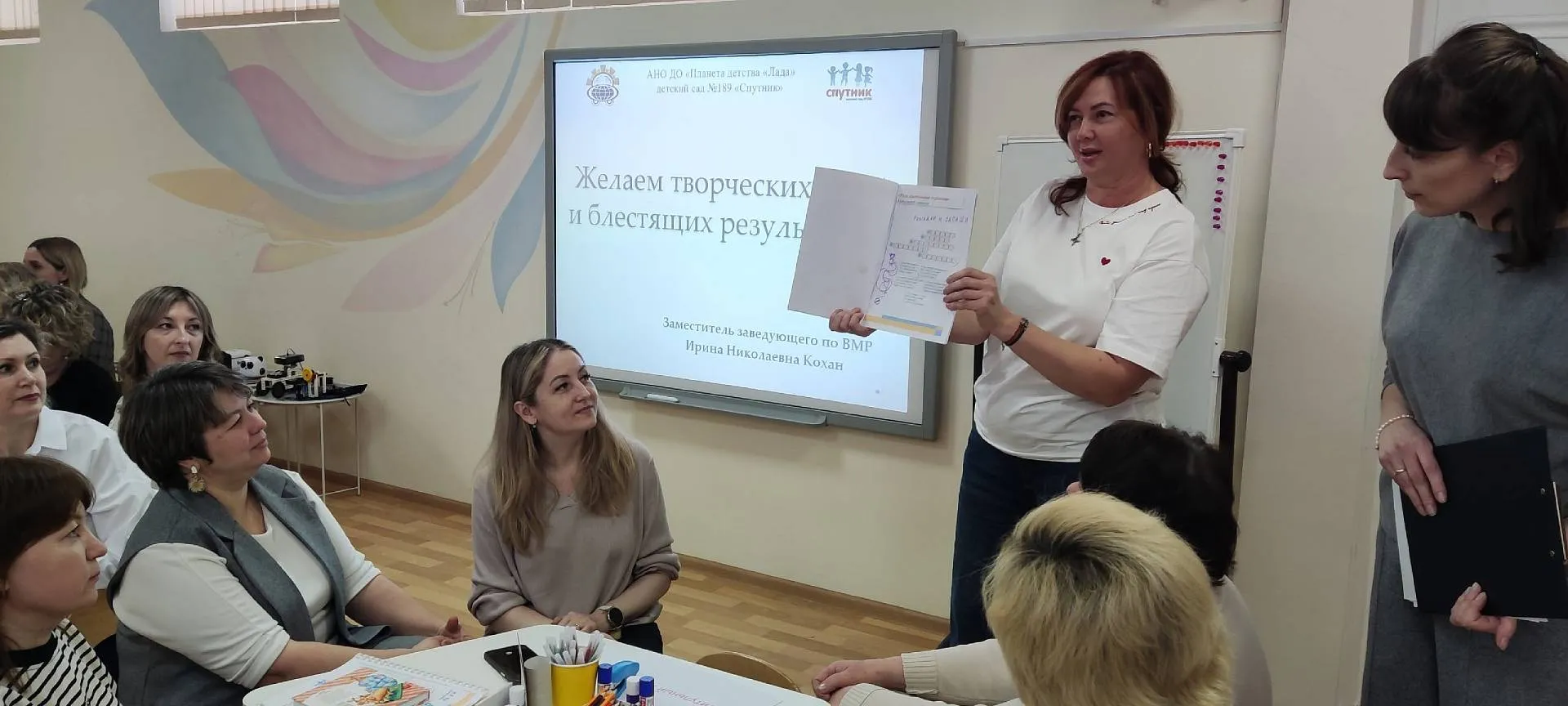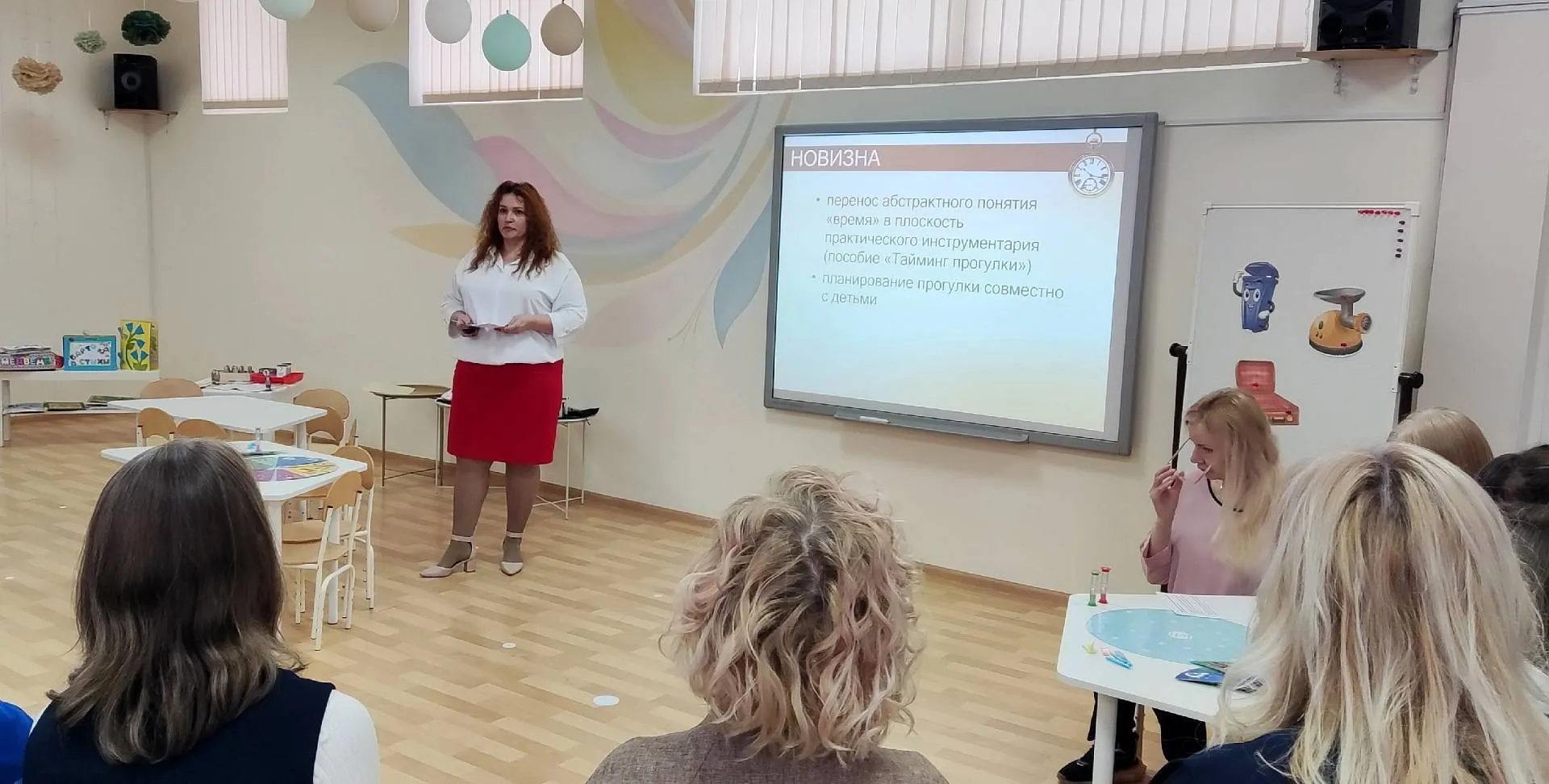 Байденко Инна Валентиновна, заместитель заведующего по ВМР детского сада № 159"Соловушка", представила мастер-класс: «Архитекторы времени: как научить старших дошкольников управлять деятельностью на прогулке», направленный на повышение профессиональной компетентности педагогов в вопросах формирования у дошкольников временных представлений и навыков самоорганизации через внедрение игрового пособия «Тайминг прогулки».