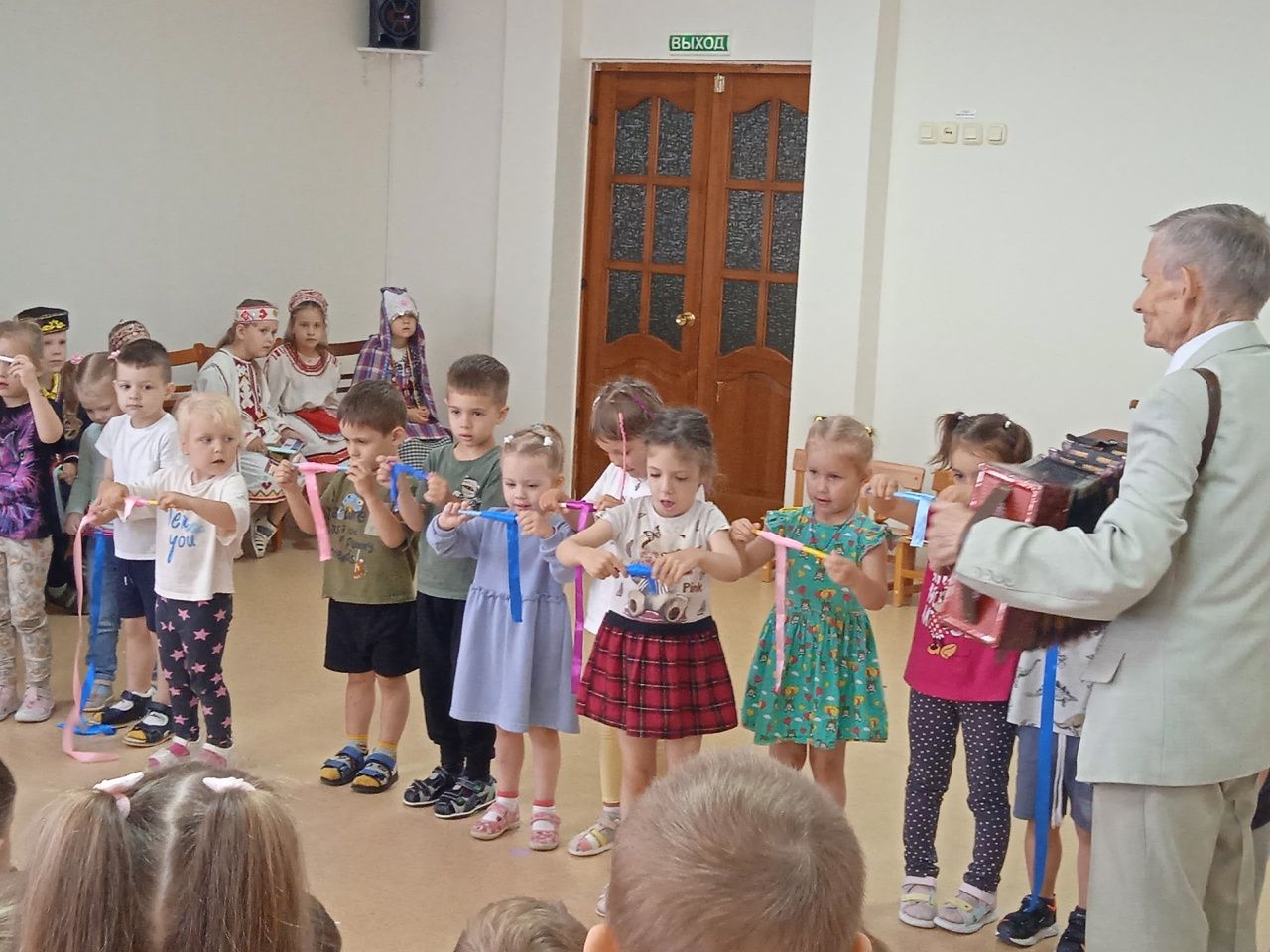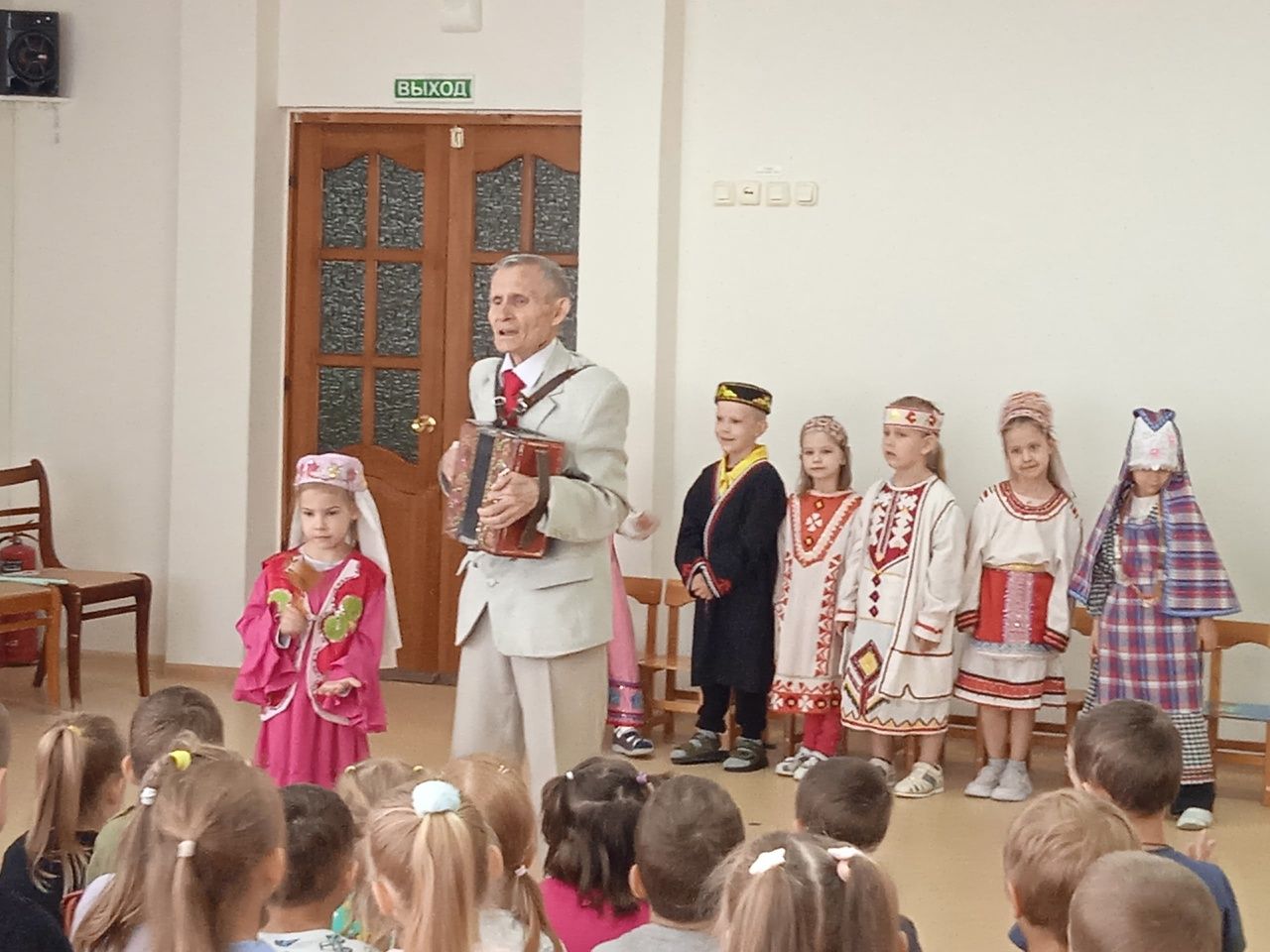 Ему помогали воспитанники группы 92: они показывали народные костюмы, играли на музыкальных инструментах и показывали игры народов Поволжья.