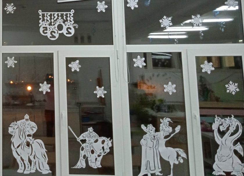 Сказка пришла не только в группы, но и на окна. Присмотритесь и вы увидите богатырей земли Русской, Змея Горыныча, Емелю с Щукой-волшебницей...