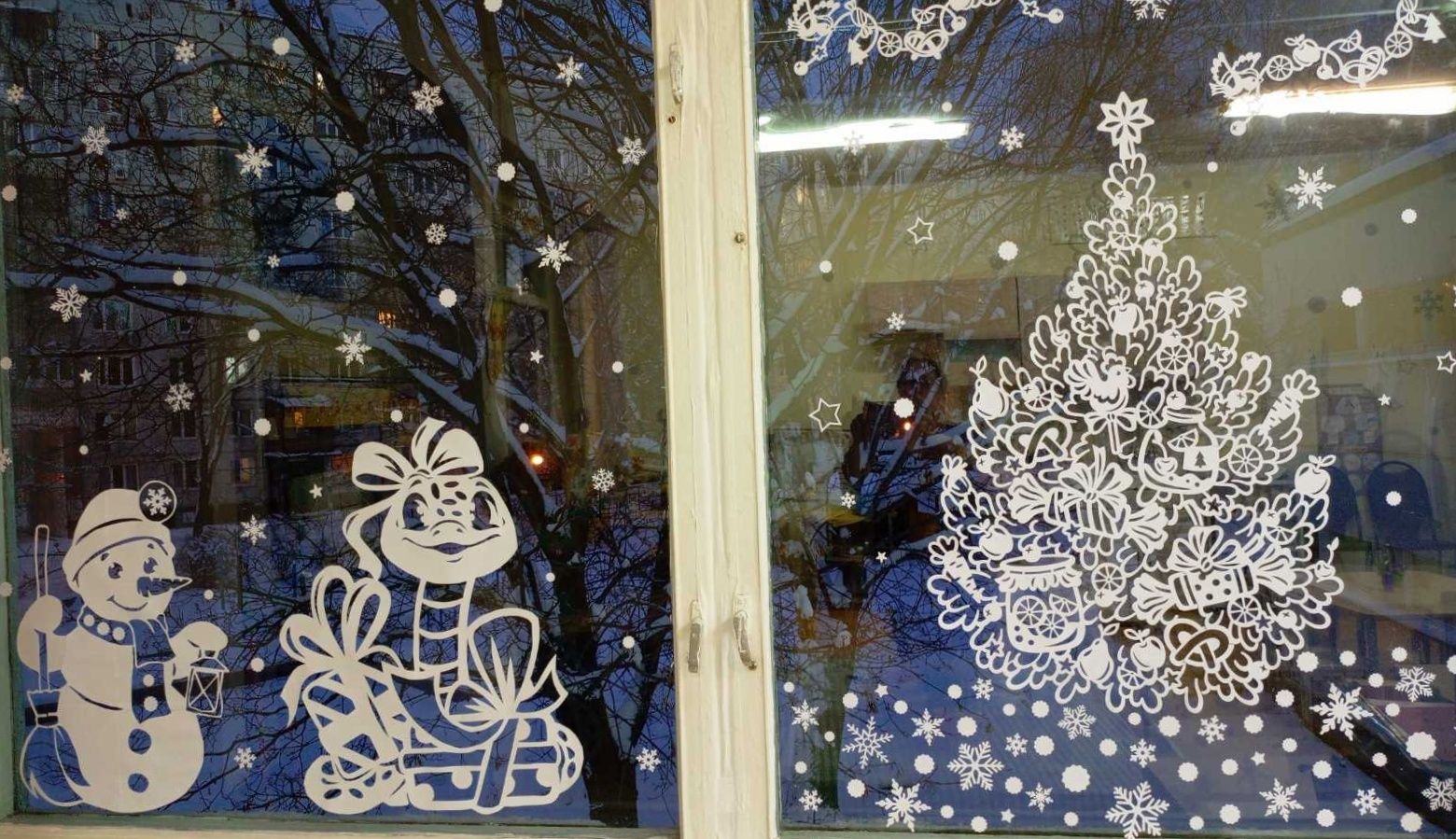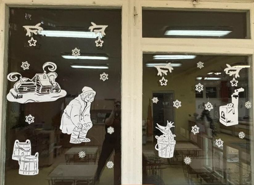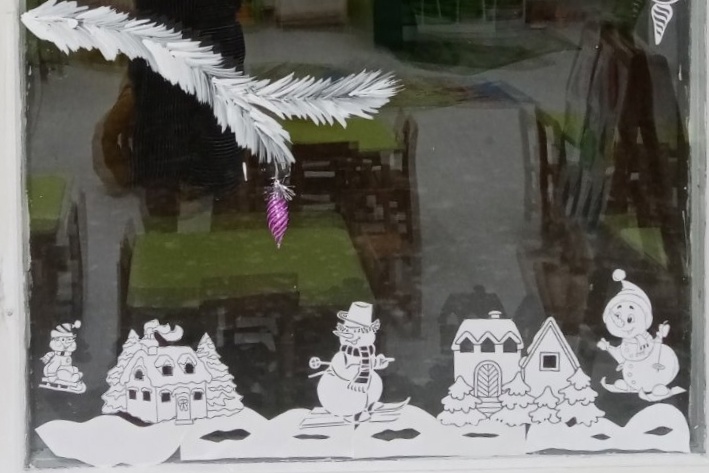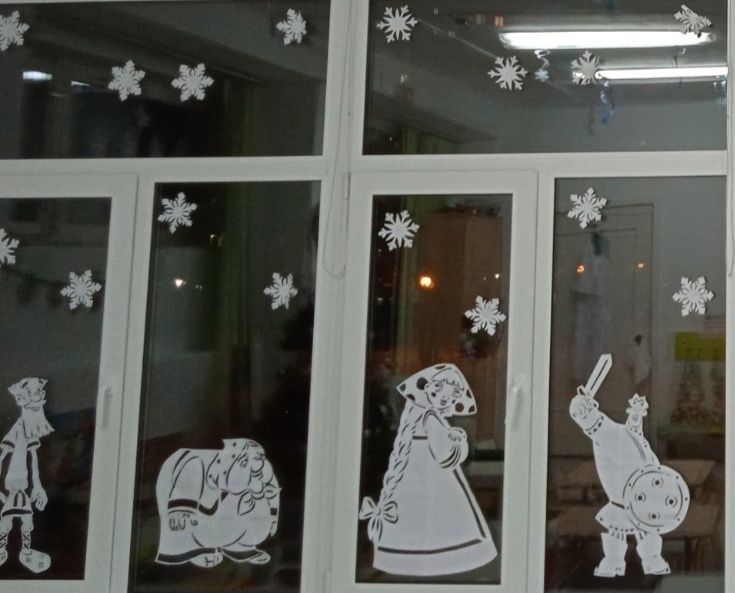 Снеговики, Снегурочки, Зайчата, и даже герои всеми любимого мультфильма "Трое из Простоквашино" поселились на окнах детского сада.