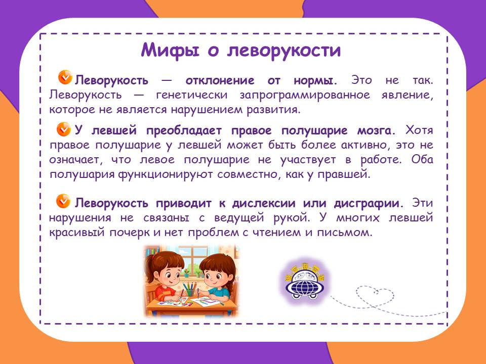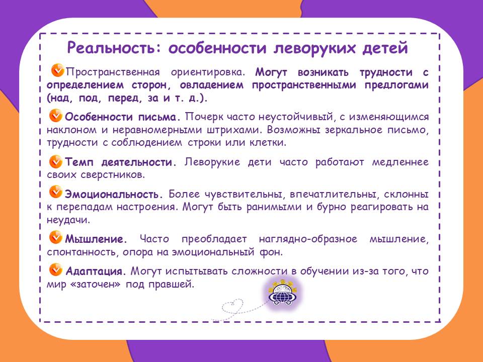«Почему он пишет зеркально?», «Будет ли он успевать в школе?», «Надо ли переучивать?» - разложим всё по полочкам вместе с Ириной Валентиновной Корягиной, педагогом-психологом АНО ДО Планета детства Лада ДС №157 «Светлячок» : развенчаем мифы, объясняем особенности развития и дадим работающие советы, которые облегчат жизнь и ребёнку, и вам. Листайте фото.