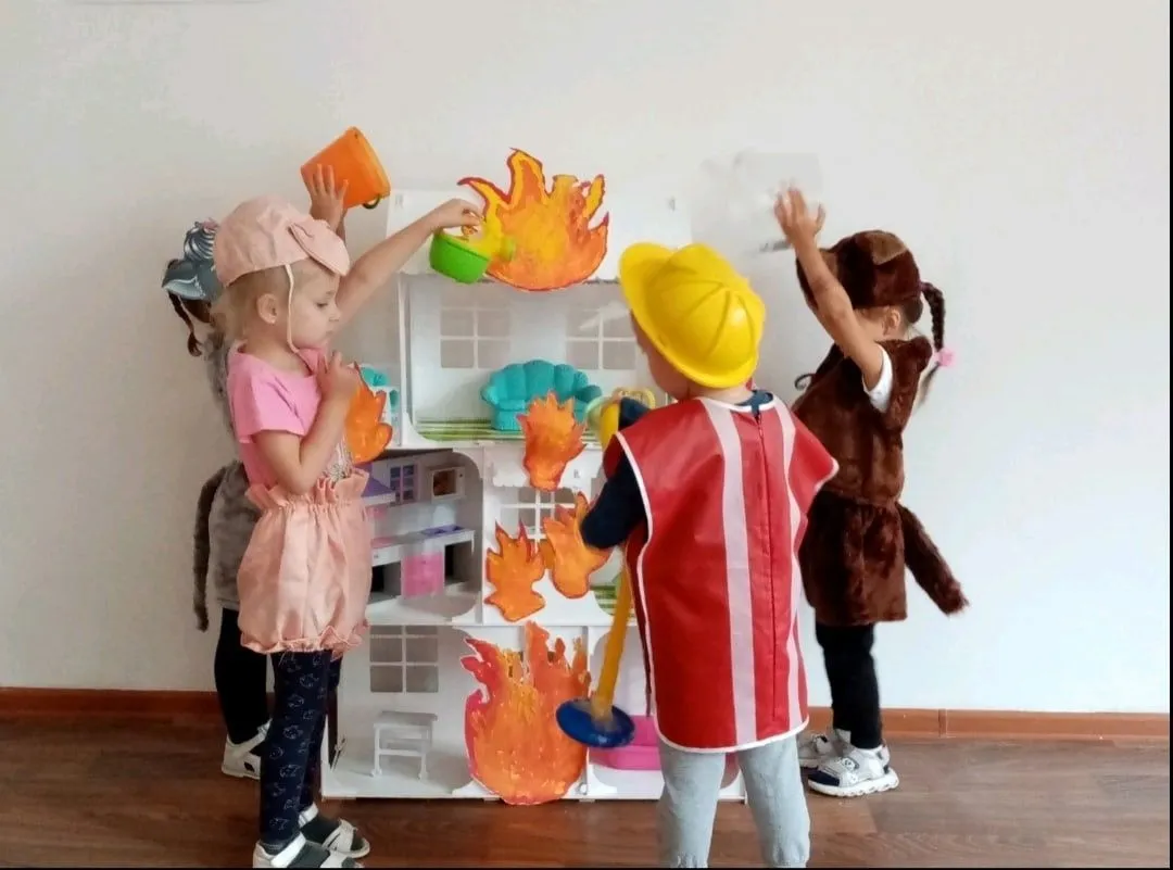 При помощи картинок - раскрасок дети самостоятельно оформили игровое поле и при помощи стрелки - определителя обсуждали различные ситуации: как бы они повели себя в сложившихся обстоятельствах. Ребята инсценировали сказку "Кошкин дом". Ребята отлично справились с тушением пожара. Теперь они знают по какому номеру звонить в случае пожара.
