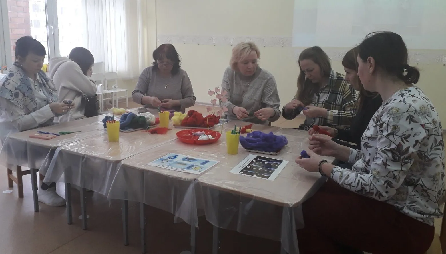В процессе мастер-класса от педагогов из детского сада № 190 «Дюймовочка» были представлены способы реализации задач воспитания через такую форму работы как творческие мастерские. Используя технологию сухого валяния в работе с детьми старшего дошкольного возраста, педагоги решают задачи воспитания уважительного отношения к культурному наследию и традициям народов России, желание сохранять и приумножать наследие предков.