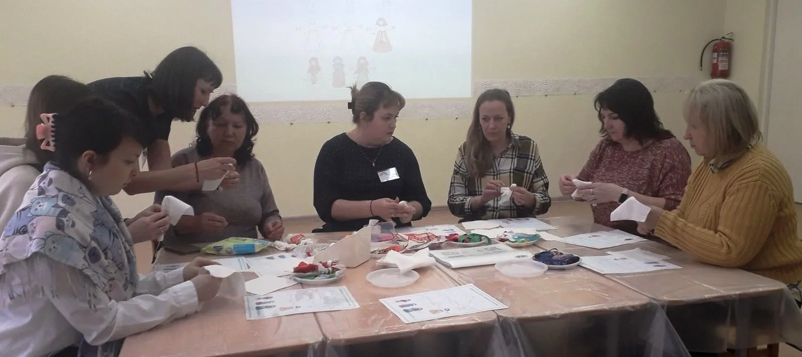 Педагоги из детского сада № 67 «Радость» предложили участникам встречи смастерить куклу-оберег. В процессе творчества педагоги пришли к выводу о том, что подобный вид детской деятельности способствует решению задачи формирования у дошкольников уважения к людям разных национальностей, способности ребенка-дошкольника принимать и понимать различия между людьми.