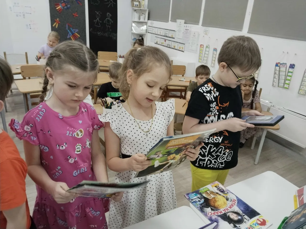 Дети также познакомились c увлекательными книгами о космосе и выполнили творческое задание.