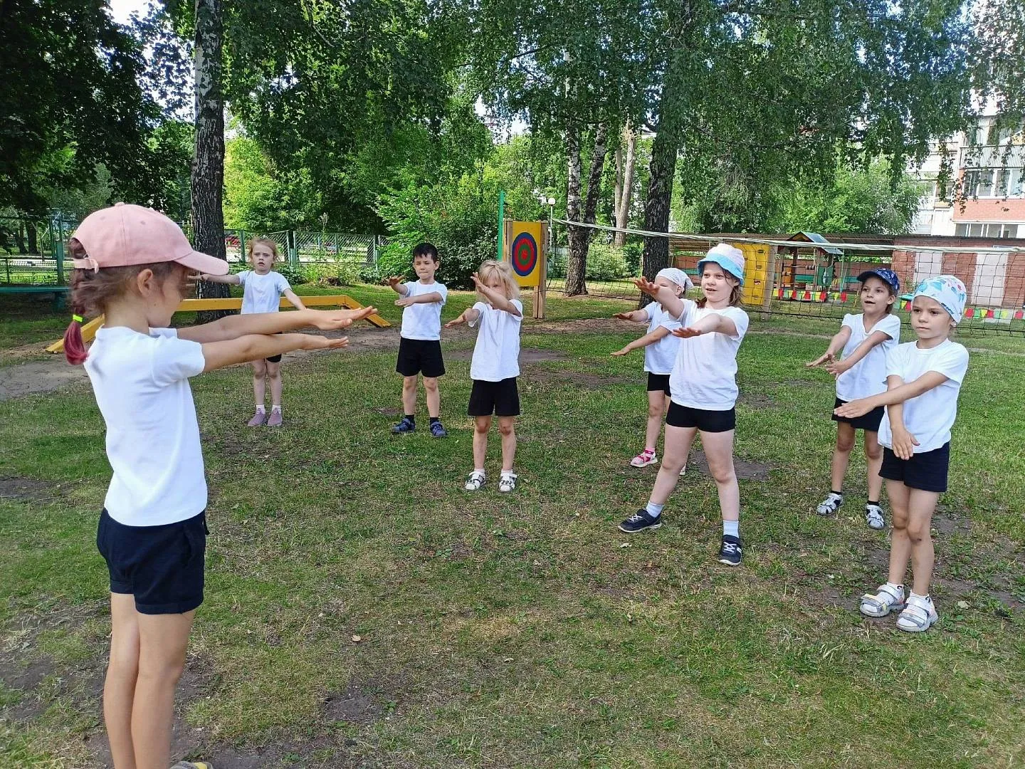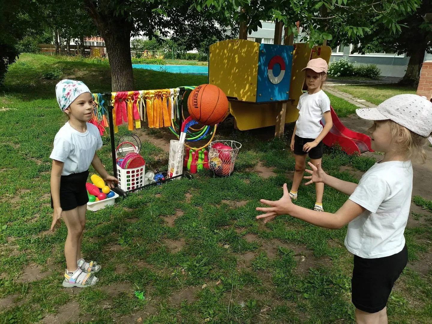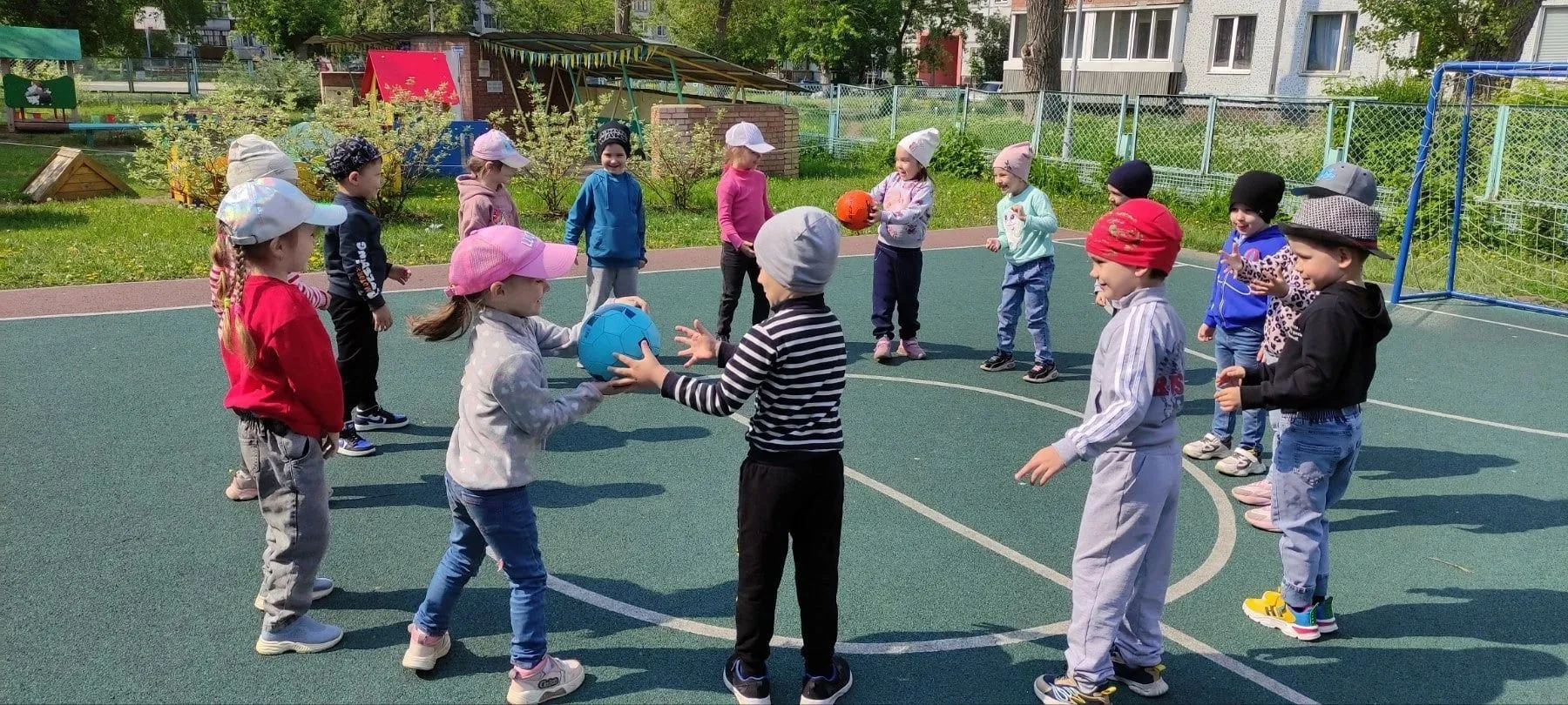 Каждое утро в детском саду начинается с утренней гимнастики на свежем воздухе под веселую, ритмичную музыку, которая заряжает бодростью и энергией на предстоящий день. На групповых участках оборудованы центры физической активности, в которых представлен различный спортивный инвентарь (кегли, мячи разных размеров, переносные детские ворота, различные ракетки, клюшки для игры в гольф и многое другое). Схемы, алгоритмы организации различных видов двигательной деятельности (подвижных игр, эстафет, полосы препятствий и др), чек-листы юных спортсменов (футболистов, теннисистов, баскетболистов, игроков в бадминтон) - всё это побуждает детей к самостоятельной двигательной активности. Даже наблюдения за природой в «Матрешке» происходят в движении. Конечно, любимым времяпровождением в детском саду является «Время подвижных игр», которые организуются в завершающей части прогулки! А раз в две недели, в пятницу, в детском саду проводится спортивное развлечение: «День Нептуна», «Мама, папа, я – спортивная семья», «Праздник мяча» и многие другие нацеливают ребятишек проводить отдых активно и полезно для здоровья!