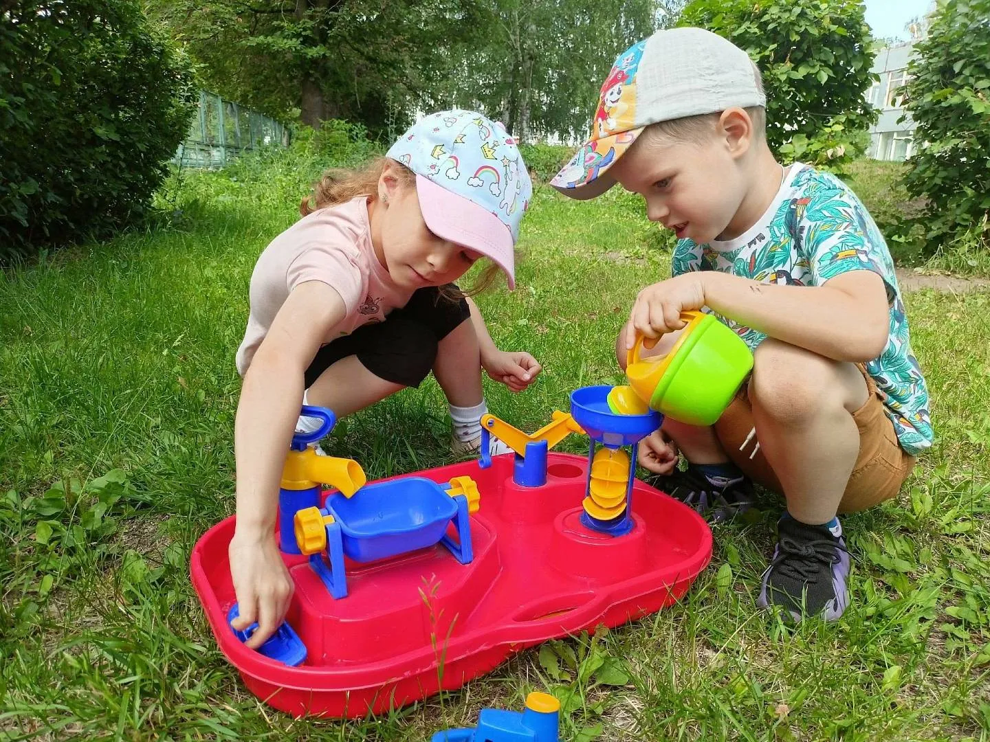 Для оздоровления детей и формирования у них потребности в ведении здорового образа жизни, в детском саду большое внимание уделяется закаливанию. Солнце, воздух и вода – наши лучшие друзья! Босоножье, игры с водой, купание в открытом бассейне и обрызгивание водой, солнечные ванны (конечно, регламентированные по времени и дозировке) – укрепляет иммунитет детского организма! Питьевой режим – важная составляющая летнего оздоровительного периода! Полезная водичка – всегда в доступе для наших малышей!