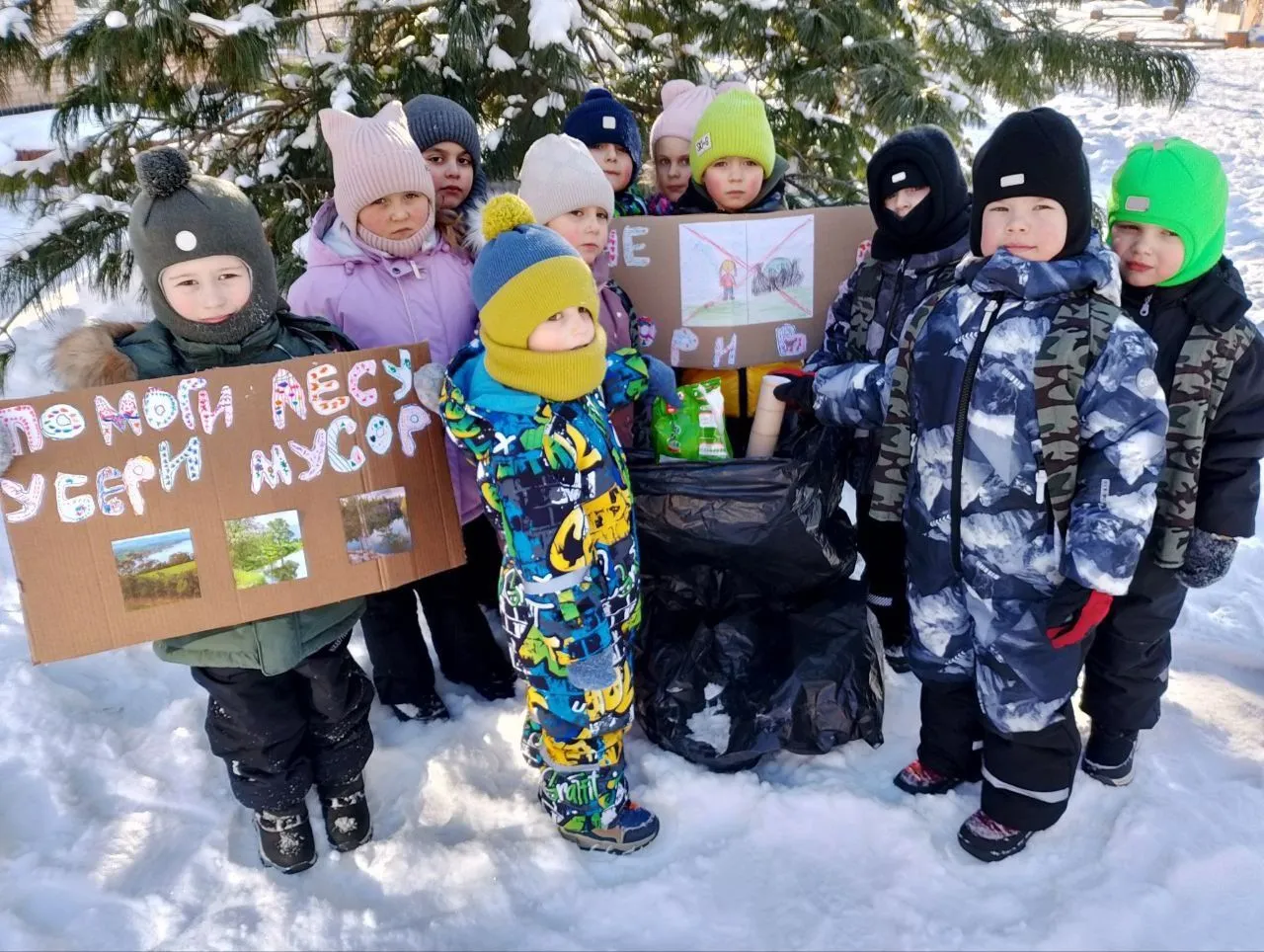 Наши ребята постарались на славу, и мы очень надеемся, что каждый из вас прислушается к нашим дошколятам и больше никогда не будет оставлять после себя мусор в лесу.