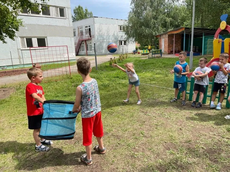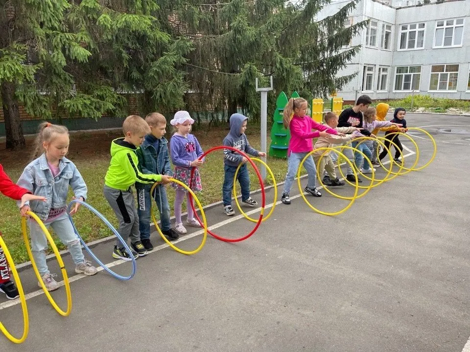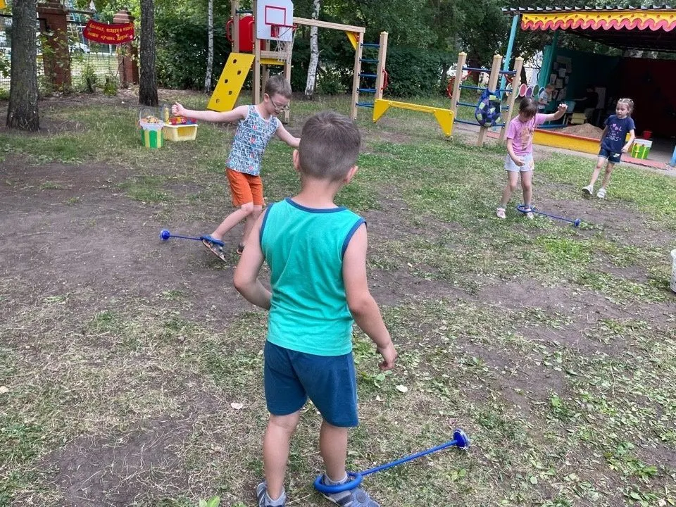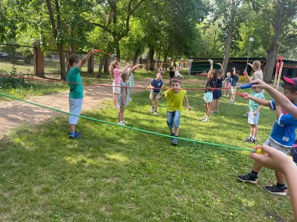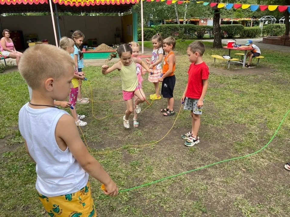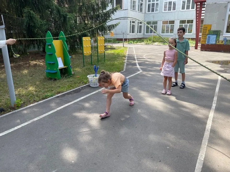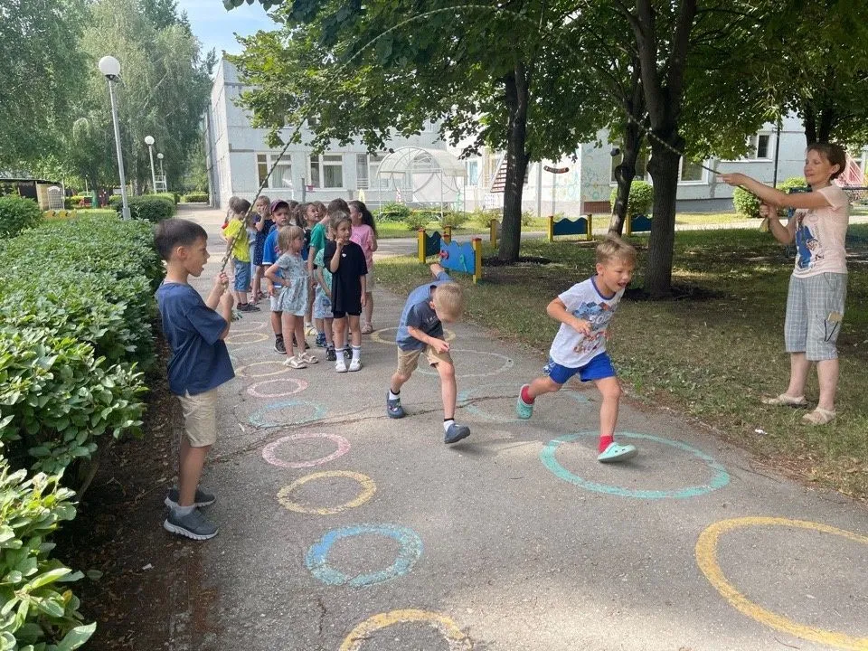 Дети старшего и подготовительного возраста играли в различные игры и эстафеты: «ручеёк», «рыбак и рыбки», «пробеги через вращающуюся скакалку». Использовали
