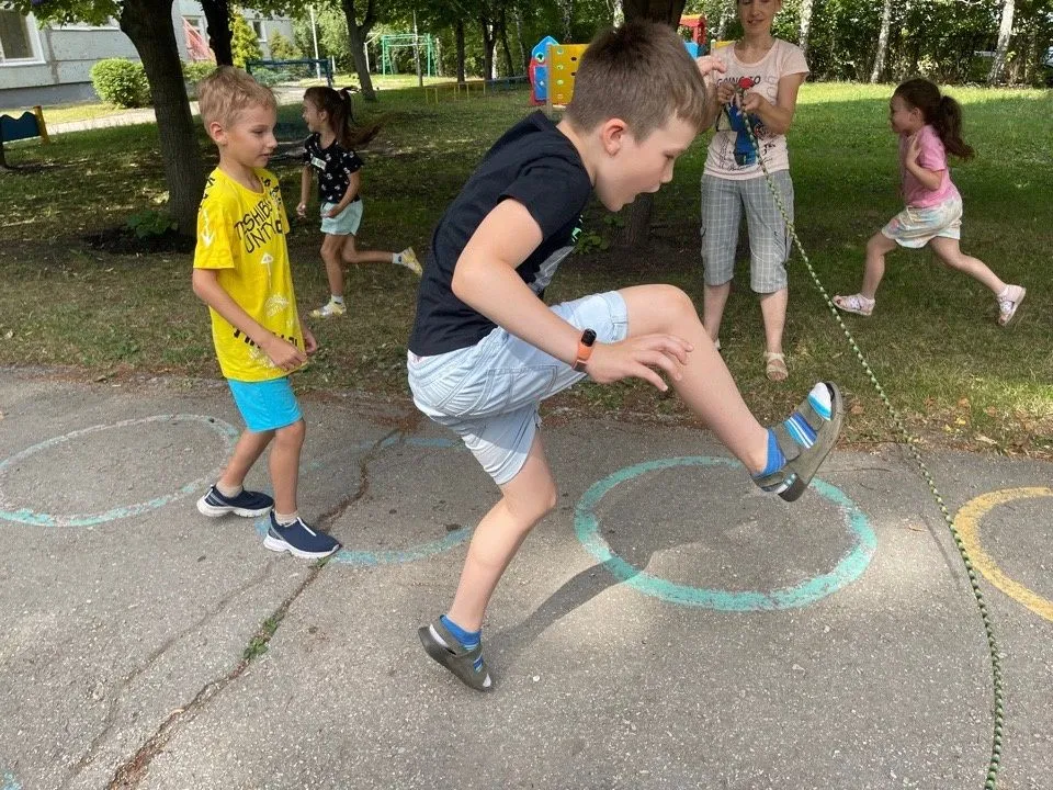 В течении дня ребята соревновались, кто больше сделает прыжков через скакалку на двух ногах.
