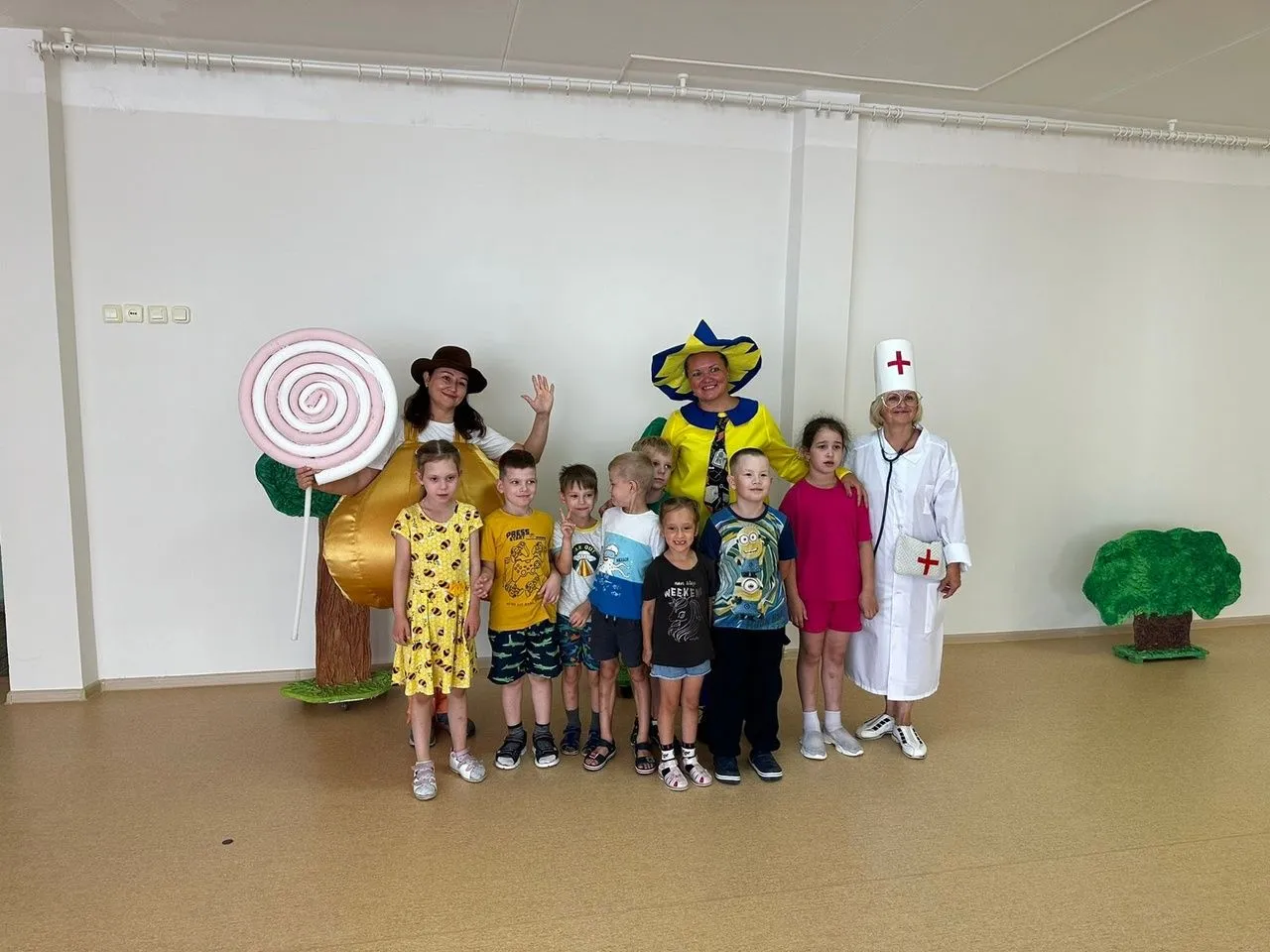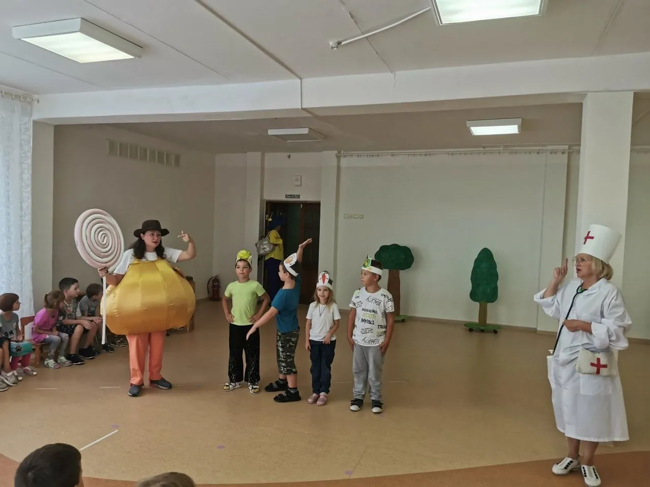 10 августа в канун дня физкультурника в нашем саду прошел праздник для воспитанников старшего возраста "Незнайка открывает секрет здоровья". В этом ему помогли ребята и доктор Здоровейкина. Вместе с ними Незнайка делал зарядку, танцевал, а потом и сам учил обжорку Робина-Бобина как стать таким же весёлым и активным, как ребята в " Крепыше".