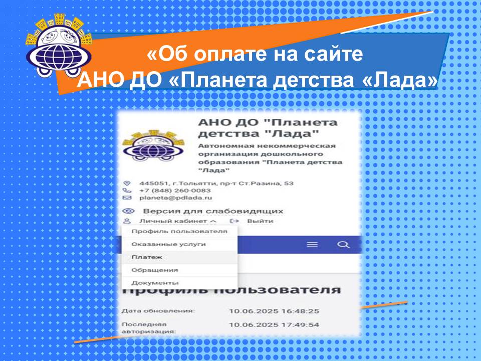 Об оплате за детский сад на сайте АНО ДО «Планета детства «Лада»