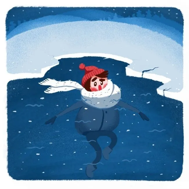 Падение под лед и, соответственно, долгое пребывание в холодной воде чревато серьезным переохлаждением и обморожением.