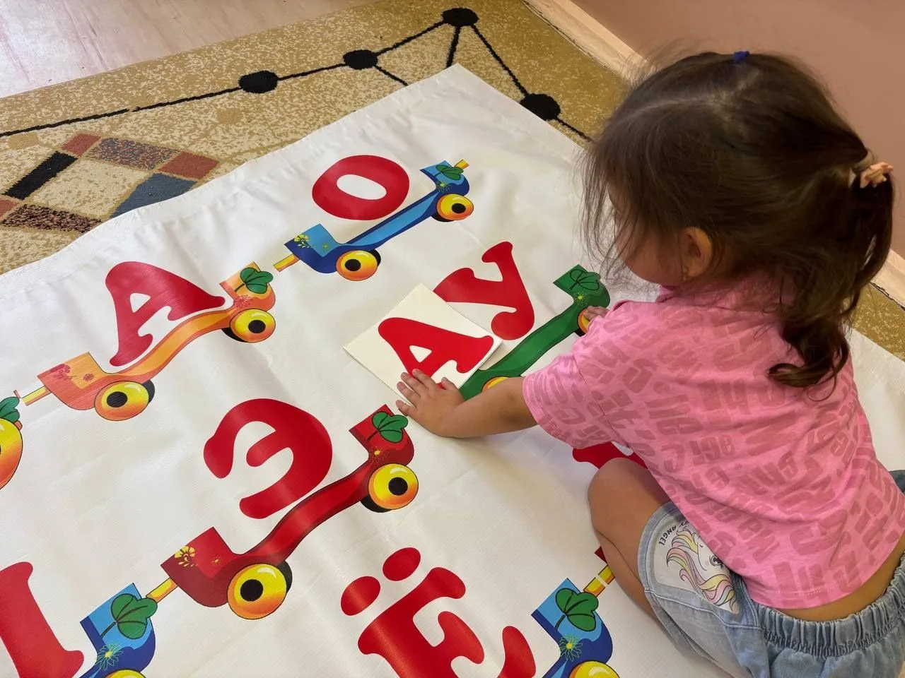- И, конечно, наши верные помощники – напольные пособия – помогли в игровой форме закрепить гласные и сделать первые уверенные шаги в освоении навыка чтения.