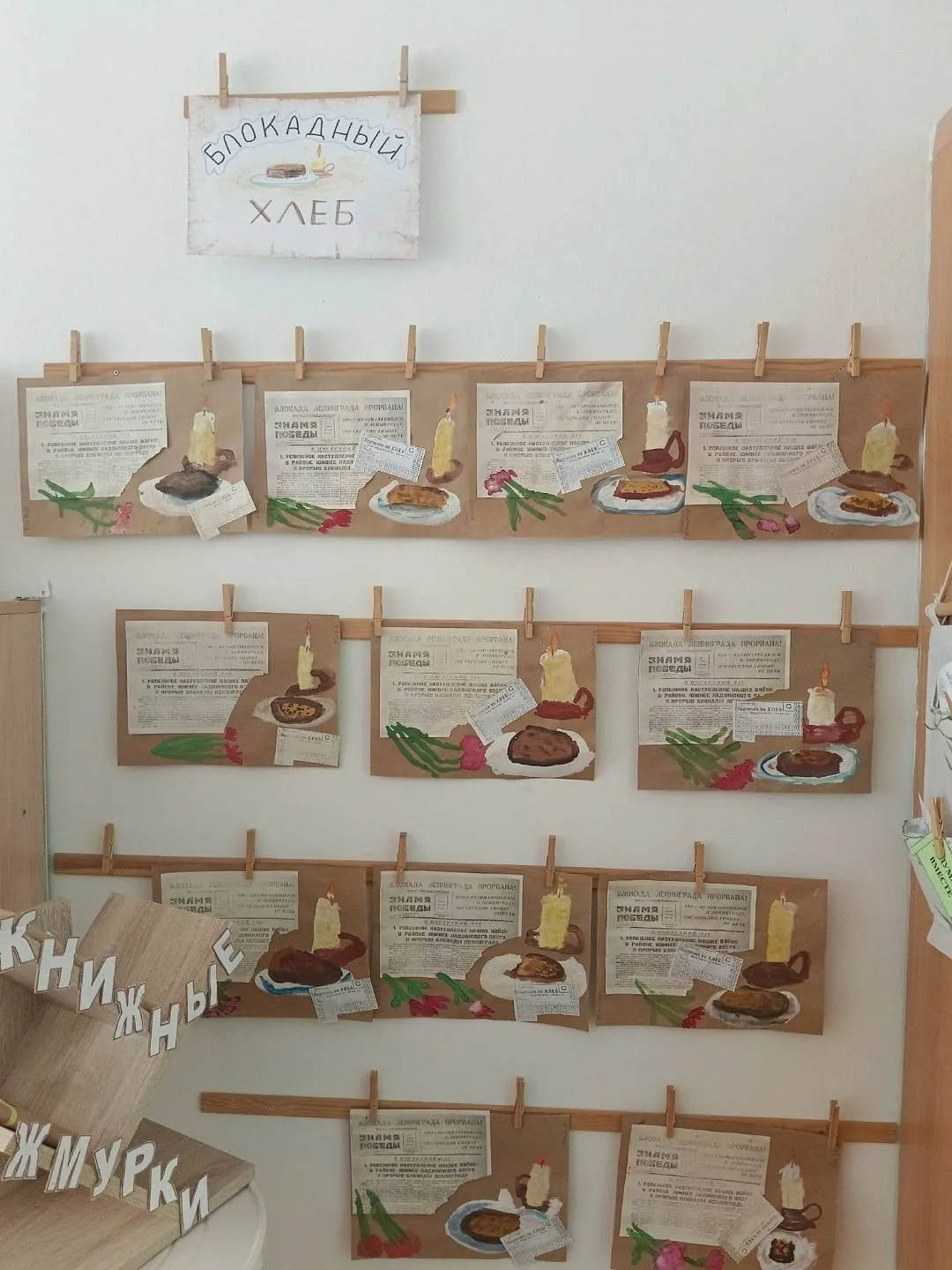 Блокадное детство на фото, хлебные карточки, радость освобождения оказали большое впечатление на ребят. В честь памяти об этих событиях дети нарисовали маленький кусочек блокадного хлеба и свечу, как символ памяти о погибших людях.