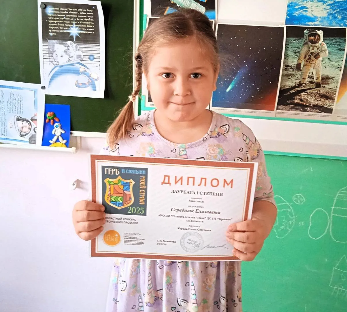 Поздравляем Елизавету С., старшая группа 95, с великолепной победой в областном конкурсе творческих проектов «Герб и святыни моей семьи», который проходил в апреле! Семейный проект стал ярким отражением семейных ценностей и традиций, и мы гордимся тем, что вы смогли так талантливо представить свою идею. Пусть эта победа вдохновляет вас на новые свершения и творческие достижения. Желаем вам дальнейших успехов и новых интересных проектов! Вы — настоящие молодцы!