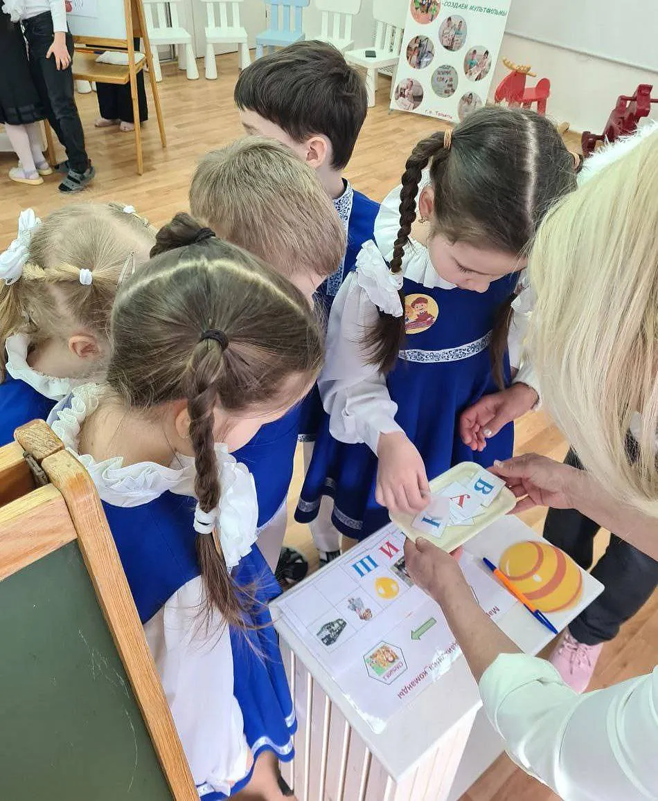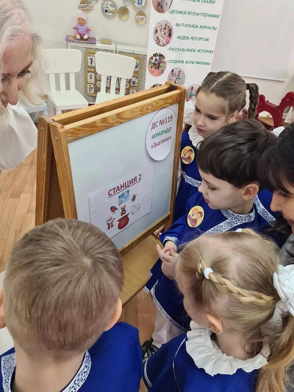 Команда ребят "Словоискатели" из "Златовласки" с педагогом Антониной Ивановной Е. на отлично справились со всеми заданиями и показали командный дух: